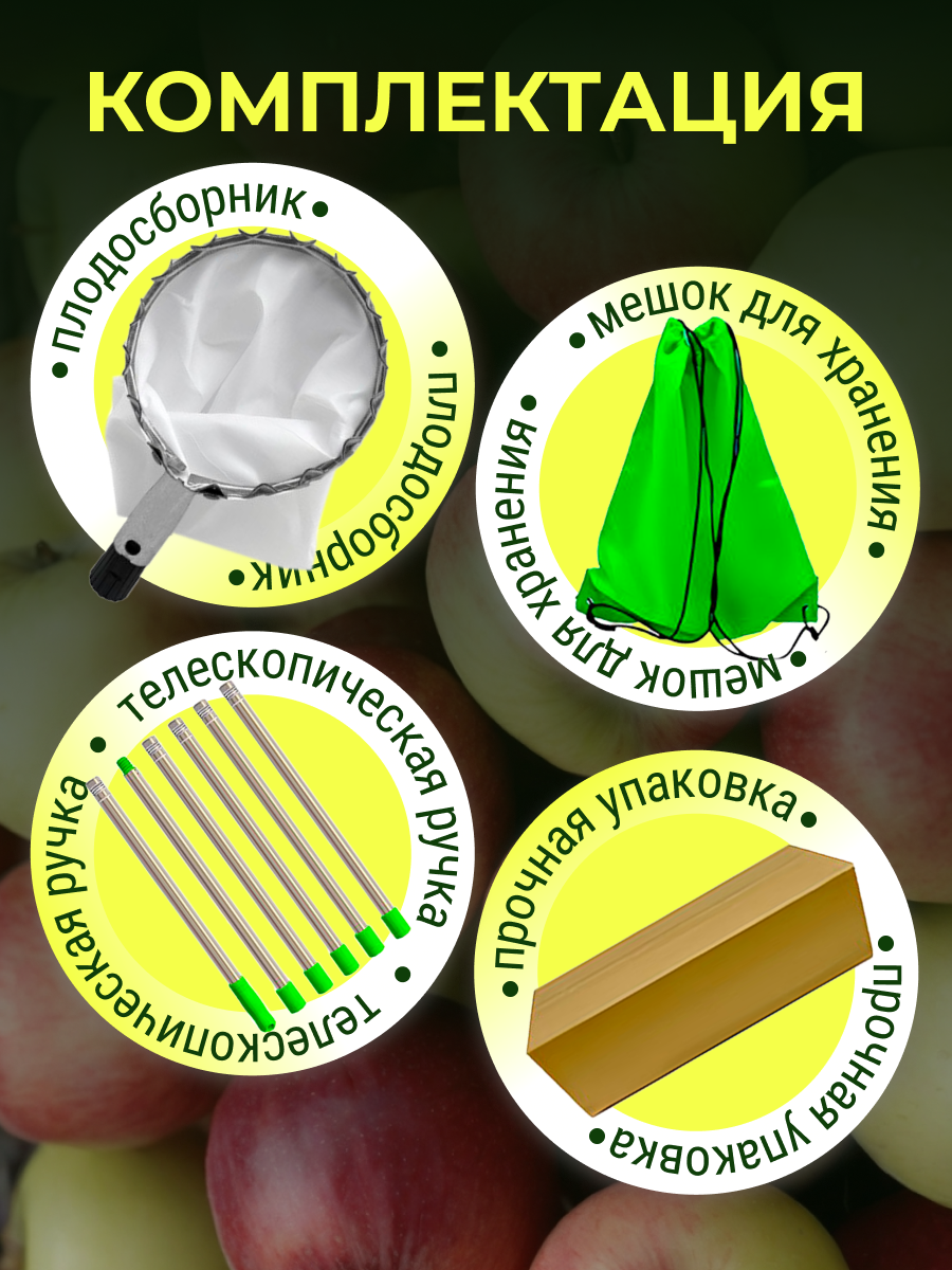 | Дополнительная информация | Плодосборник садовый для сбора урожая с телескопической ручкой |