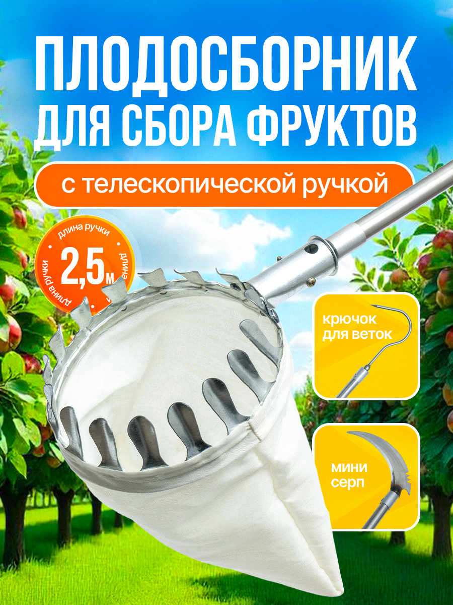 | Дополнительная информация | Плодосъемник на телескопической ручке, в комплект входит серп и крюк. В подарок идут перчатки. |