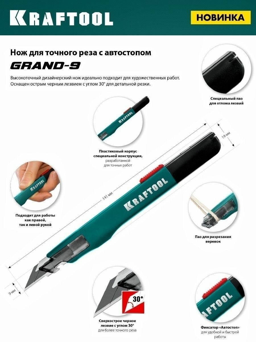 Ниже Вы можете прочитать отзывы на Нож для точного реза с автостопом GRAND-9, сегмент. лезвия 9 мм, KRAFTOOL 09192, ознакомится с подробными характеристиками, посмотреть интересные обзоры и фотографии на Нож для точного реза с автостопом GRAND-9, сегмент. лезвия 9 мм, KRAFTOOL 09192.