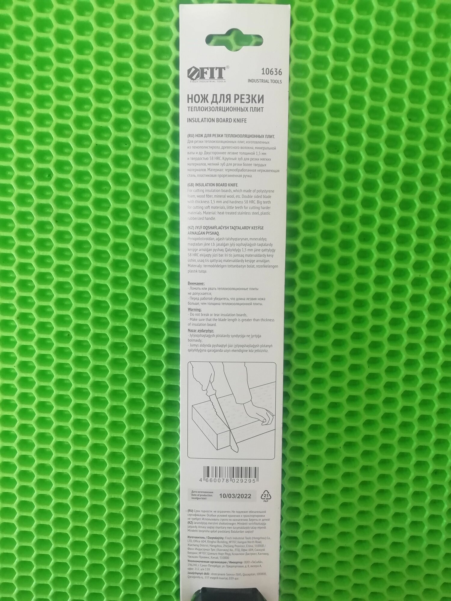 Ниже Вы можете прочитать отзывы на Нож для резки теплоизоляционных плит FIT двустороннее лезвие 240х27 мм, нерж.сталь 10636, ознакомится с подробными характеристиками, посмотреть интересные обзоры и фотографии на Нож для резки теплоизоляционных плит FIT двустороннее лезвие 240х27 мм, нерж.сталь 10636.