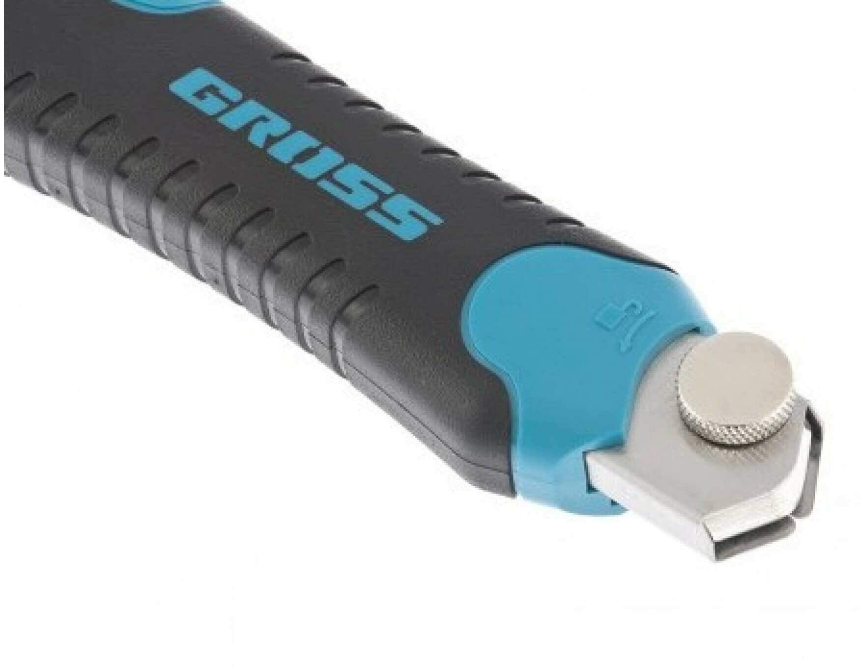 Нож 170 мм, обрезин. ABS - корпус, выдв.сегм.лезвие 18 мм (SK-5), метал. напр-щая, 5 лезвий// Gross