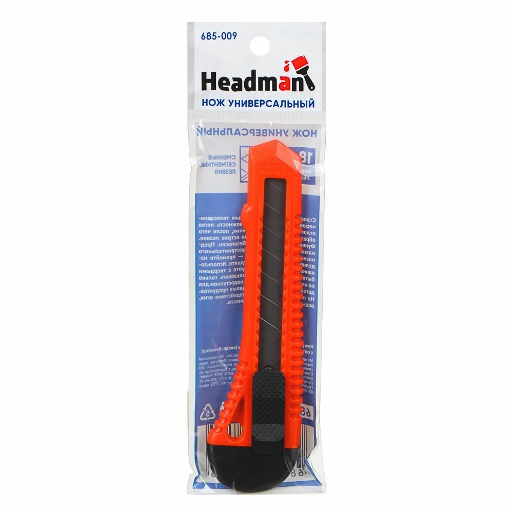 HEADMAN Нож универсальный 18мм с сегмент. лезвием, пластик, 685-009