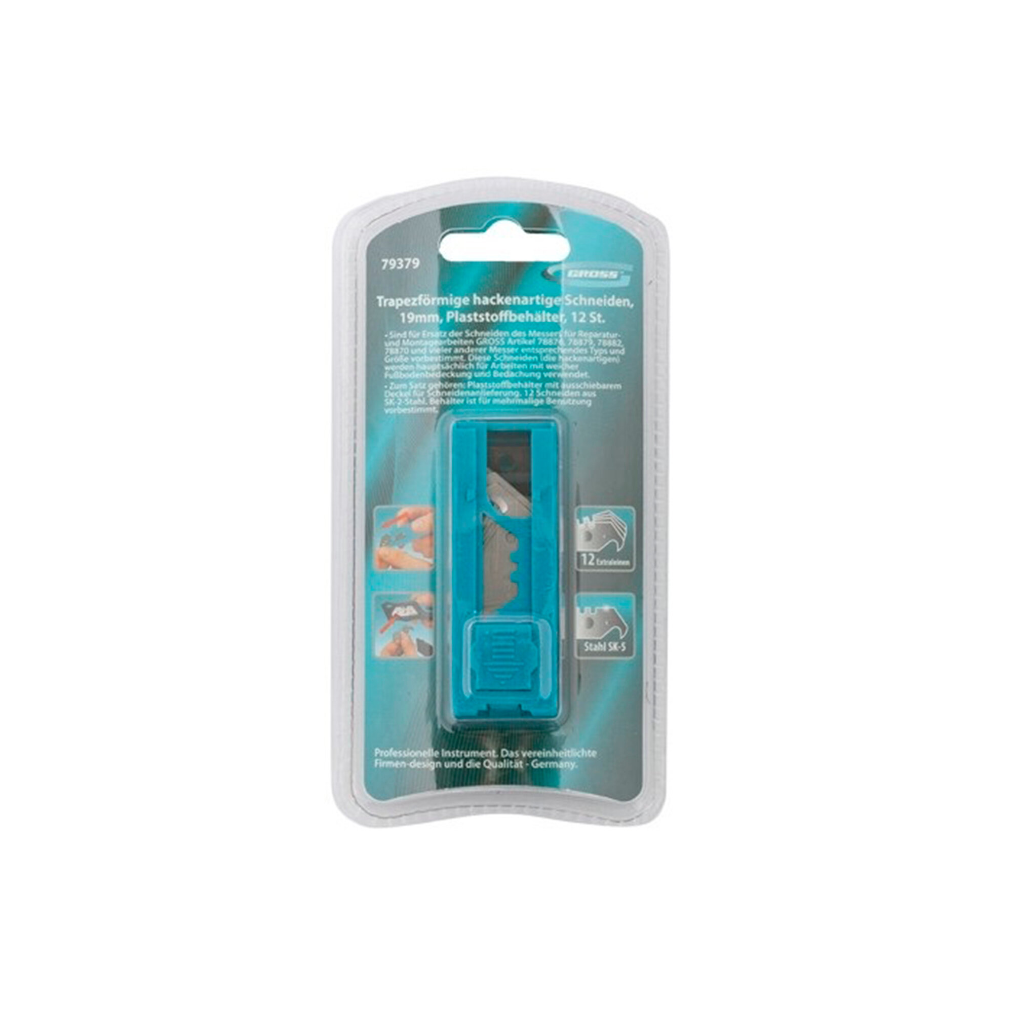 Gross Лезвия, трапециевидные крючкообразные, пластиковый пенал, 19 мм, 12 шт. 79379