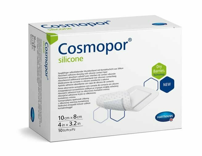 Hartmann Cosmopor Silicone, повязка сорбционная (с контактн. слоем из силикона) 10 х 8 см, 10 шт.