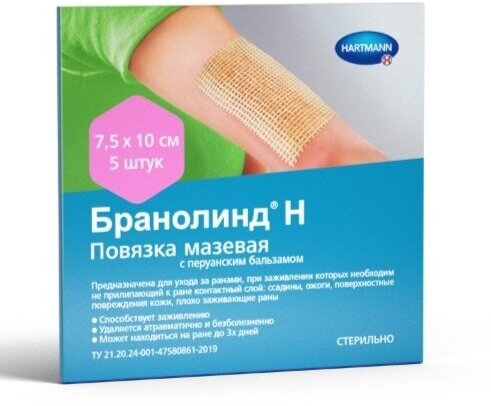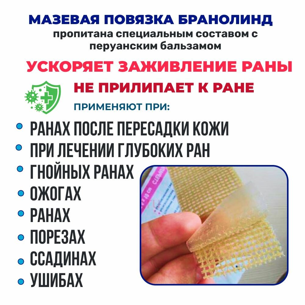 Бранолинд Н, повязка мазевая стерильная с перуанским бальзамом 7,5 см х 10 см, 5 шт. интересное: