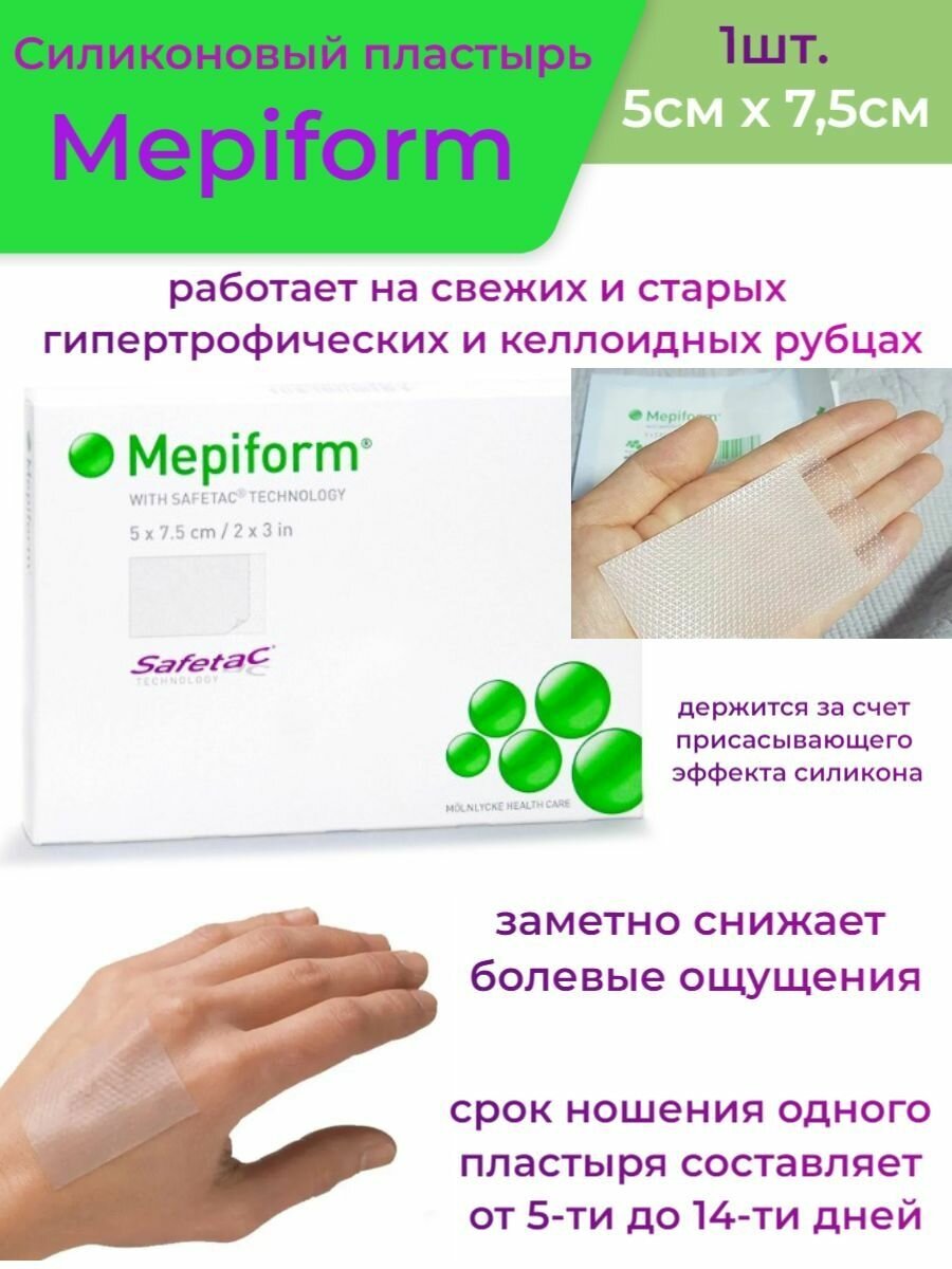 Пластырь Мепиформ (Mepiform) силиконовый от рубцов гипертрофических или келоидных самоклеящаяся 5х7.5см, 293200 (Поштучно (1 штука))