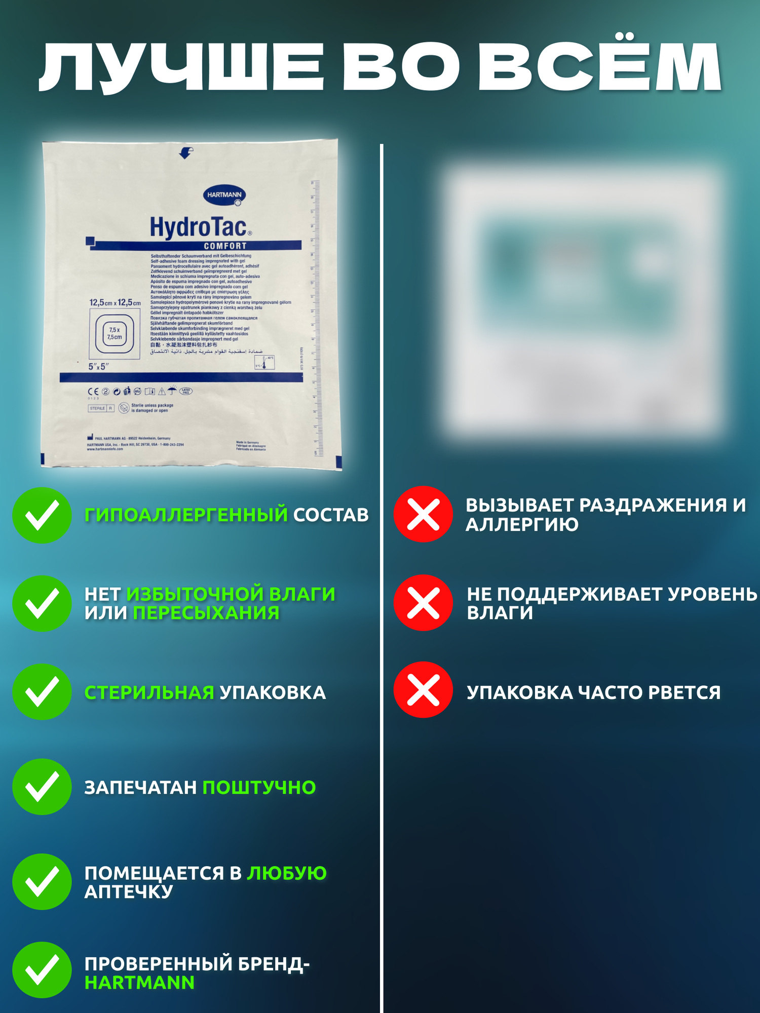 HydroTac Comfort / ГидроТак Комфорт - самоклеящаяся губчатая повязка с гидрогелевым покрытием, 12,5x12,5 см интересное: