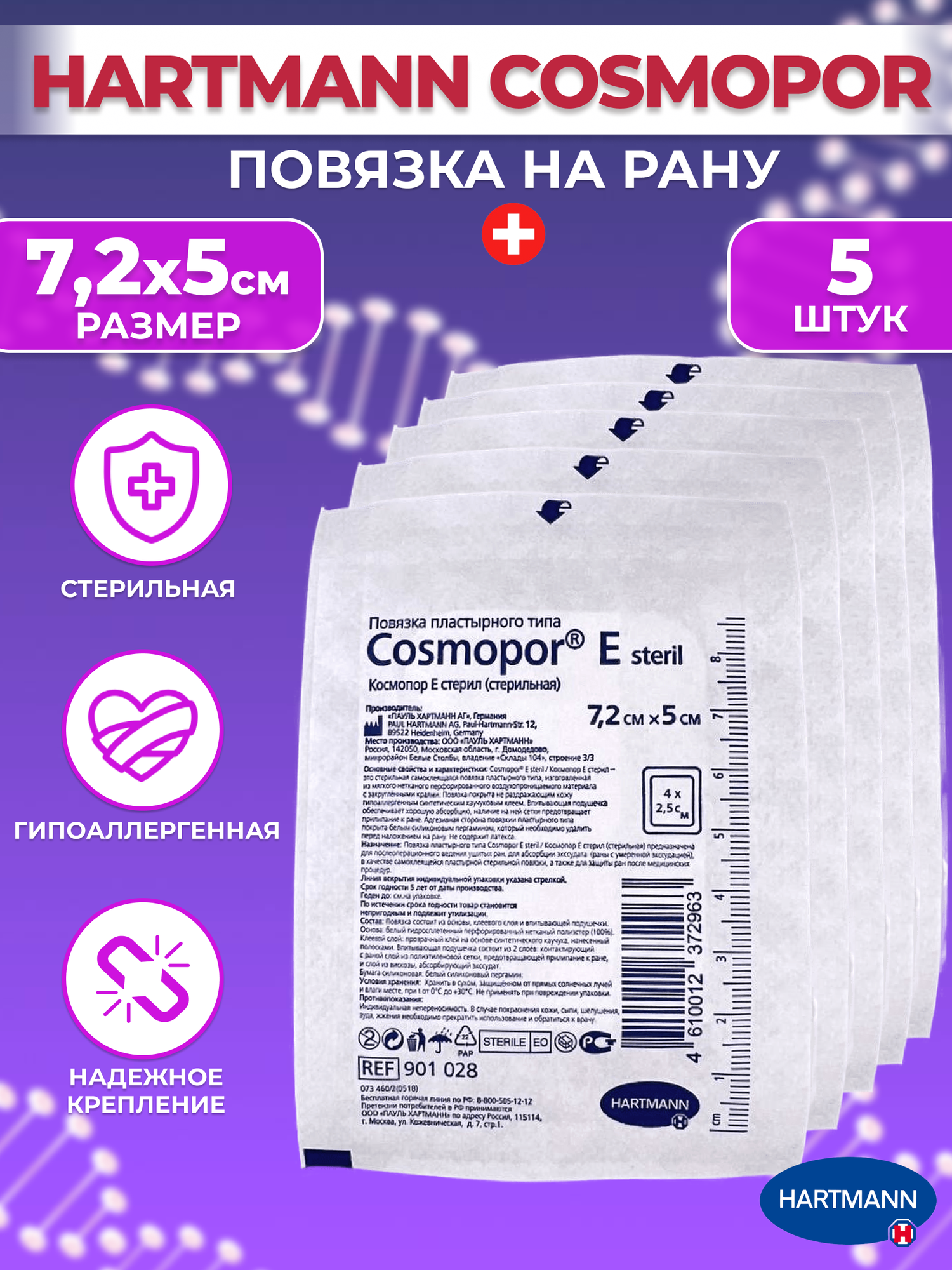 Пластыри на рану Cosmopor E повязки ранозаживляющие 7,2х5см, 5 шт.