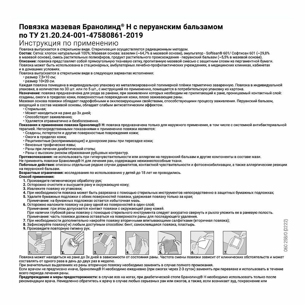 Бранолинд Н, повязка мазевая стерильная с перуанским бальзамом 7,5 см х 10 см, 5 шт.