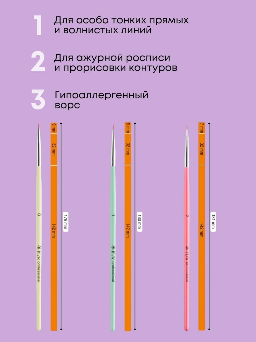Набор кистей для дизайна ногтей для маникюра Irisk Rainbow №0, 2, 3 интересное: