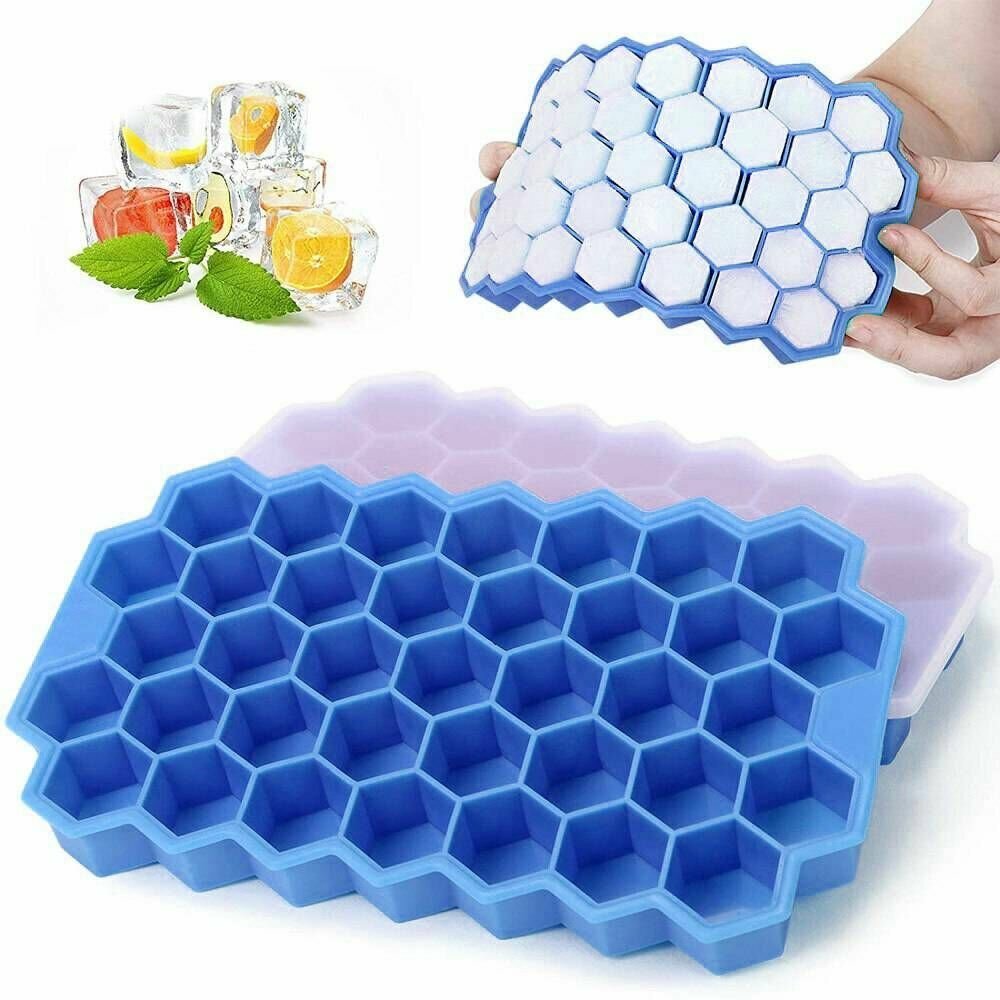 Купить Форма для льда силиконовая с крышкой "Соты", для заморозки, выпечки, коктейля, голубой