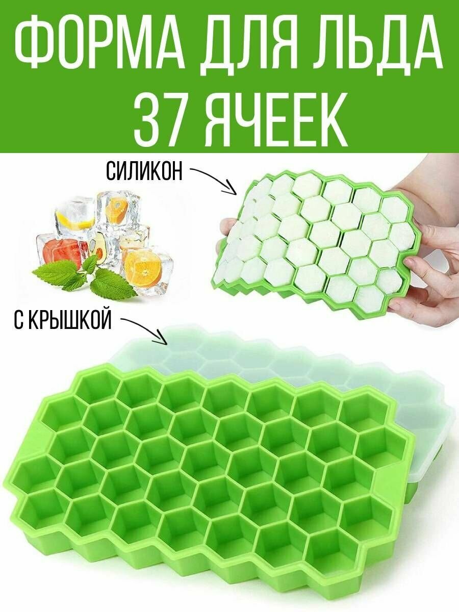 Купить Форма для льда силиконовая с крышкой "Соты", для заморозки, выпечки, коктейля, салатовый