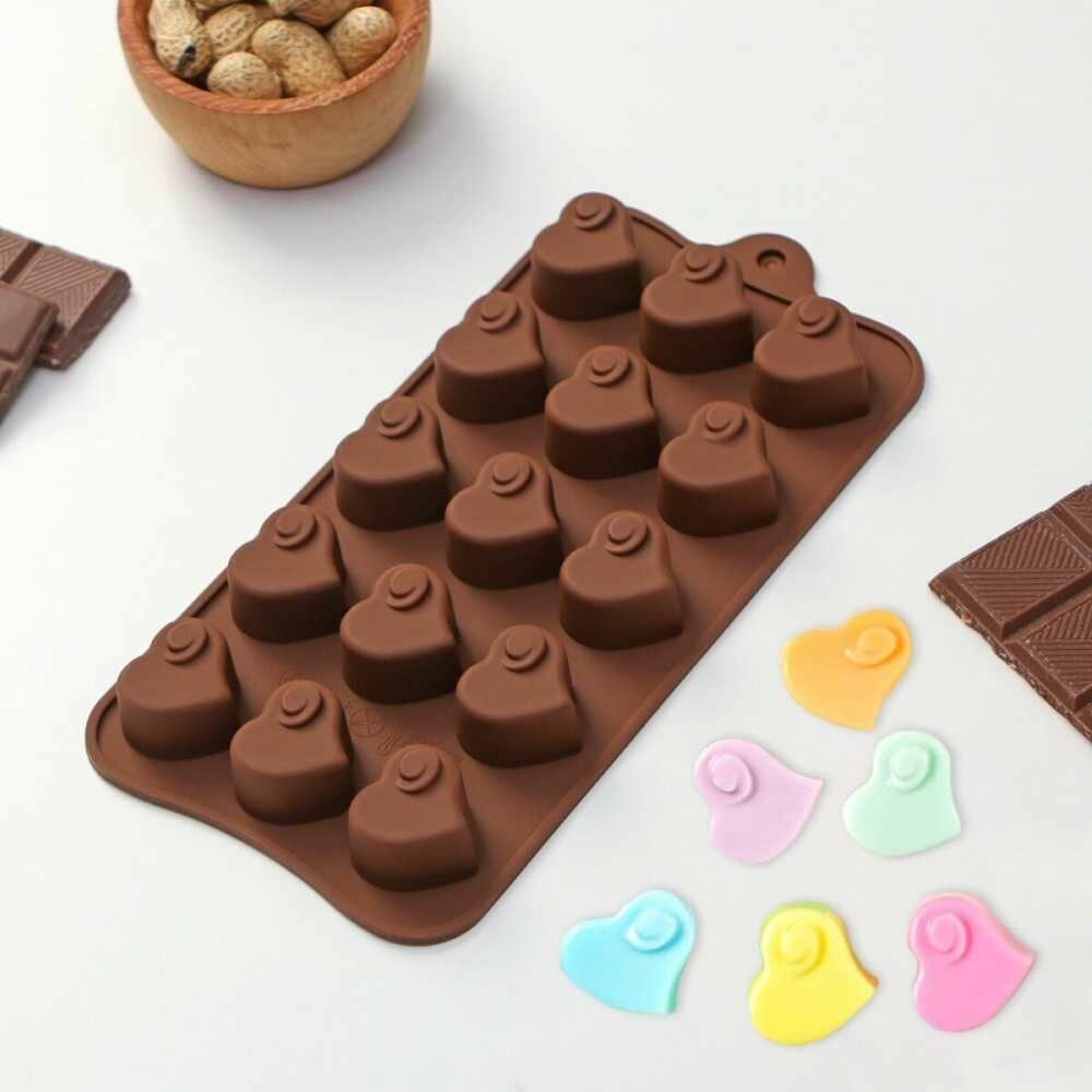 Купить Форма для леденцов и шоколадных конфет "Сердце с завитушкой", 15 ячеек