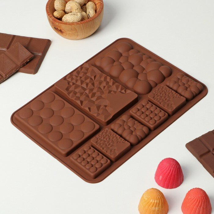 Купить Форма для шоколада Доляна «Шоколадное ассорти», силикон, 20×14,8×0,7 см, 9 ячеек, цвет коричневый