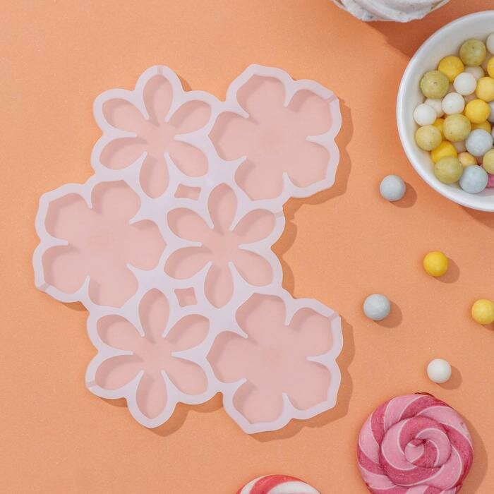 Купить Форма для леденцов «Цветочки», силикон, 14×12×0,7 см, 6 ячеек, цвет белый