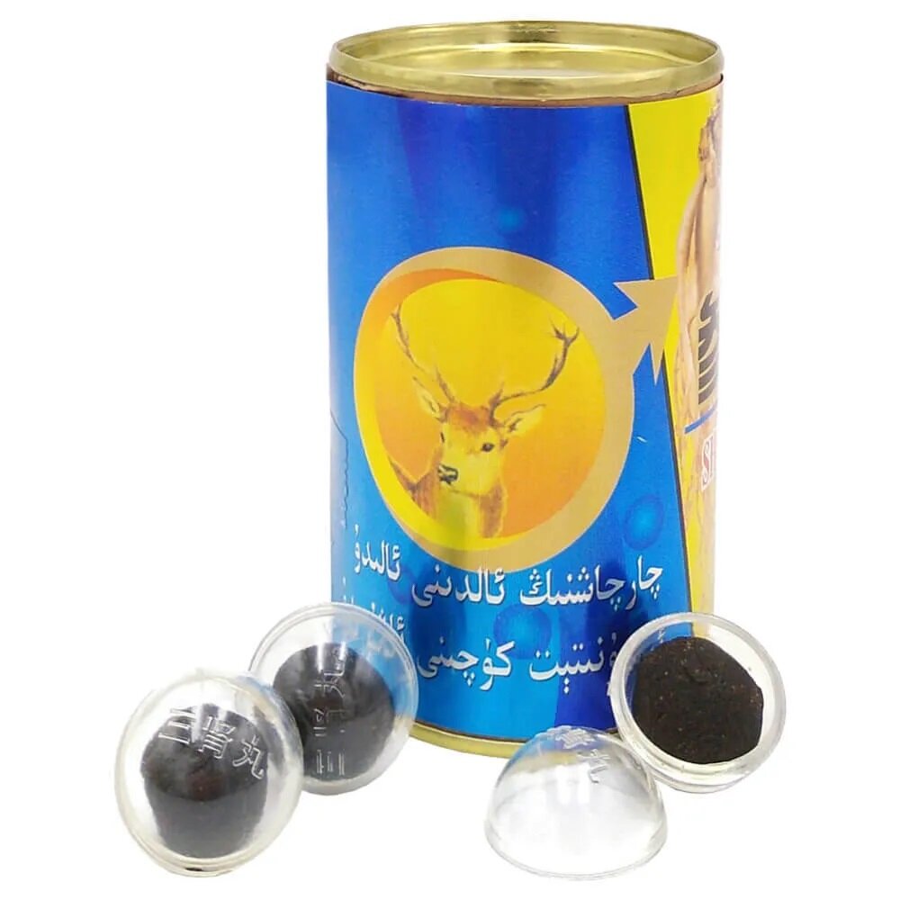 | Состав | трава Хуаньхунь, сафлор, пенис яка Тибета, женьшень, кордицепс, панты оленя, сюелян |