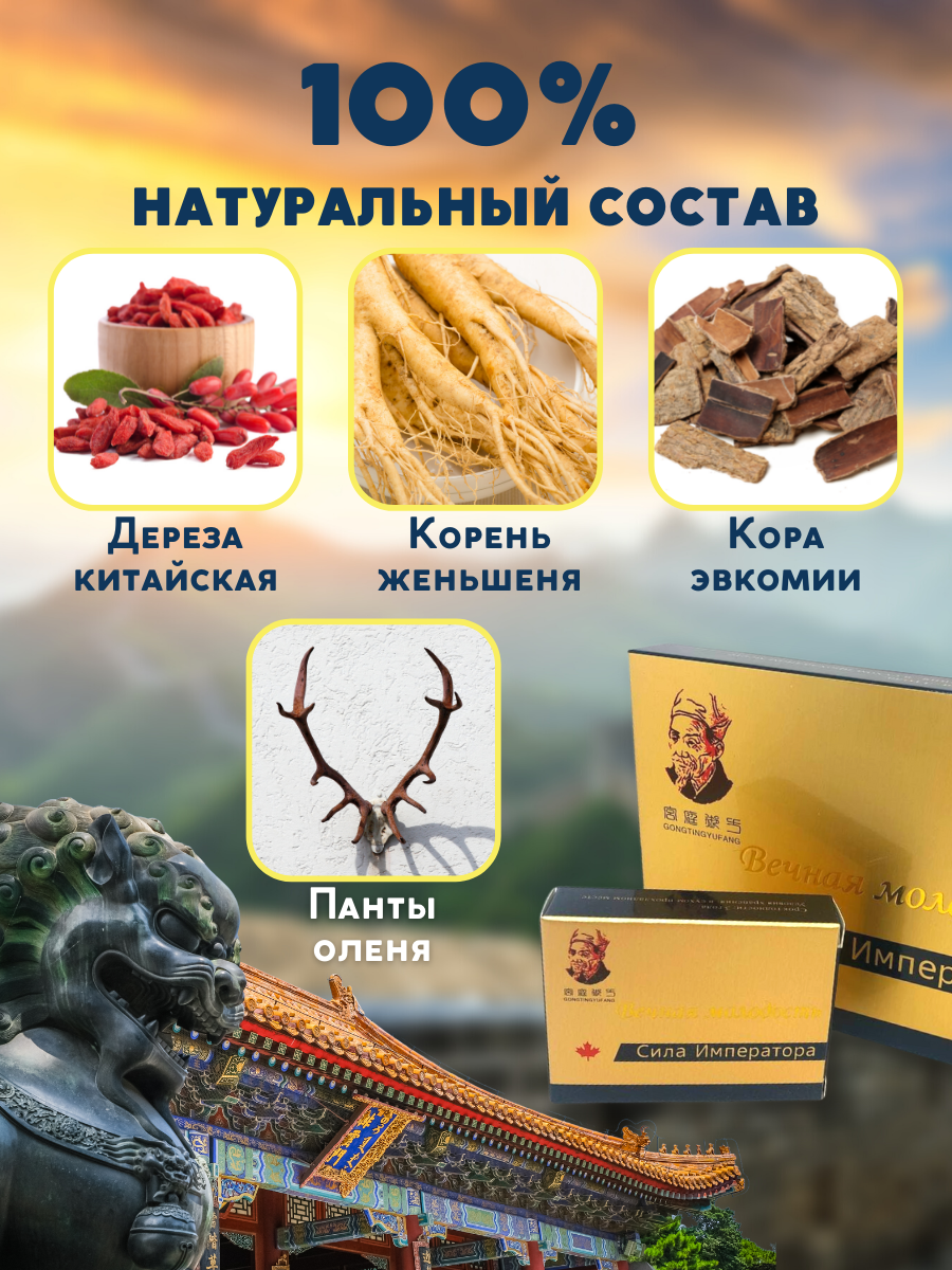 Возбудитель для мужчин Сила императора 8шт. Виагра быстродействующие таблетки для потенции эрекции продления секса увеличение члена интересное: