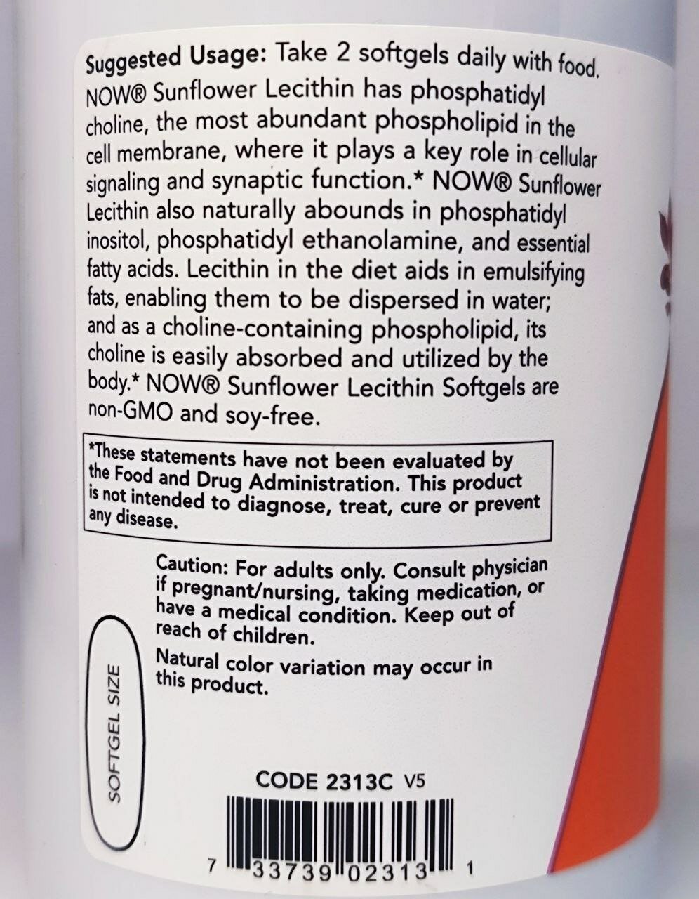 Капсулы NOW Sunflower Lecithin 1200 мг, 1200 мг, 200 шт., 1 уп. интересное: