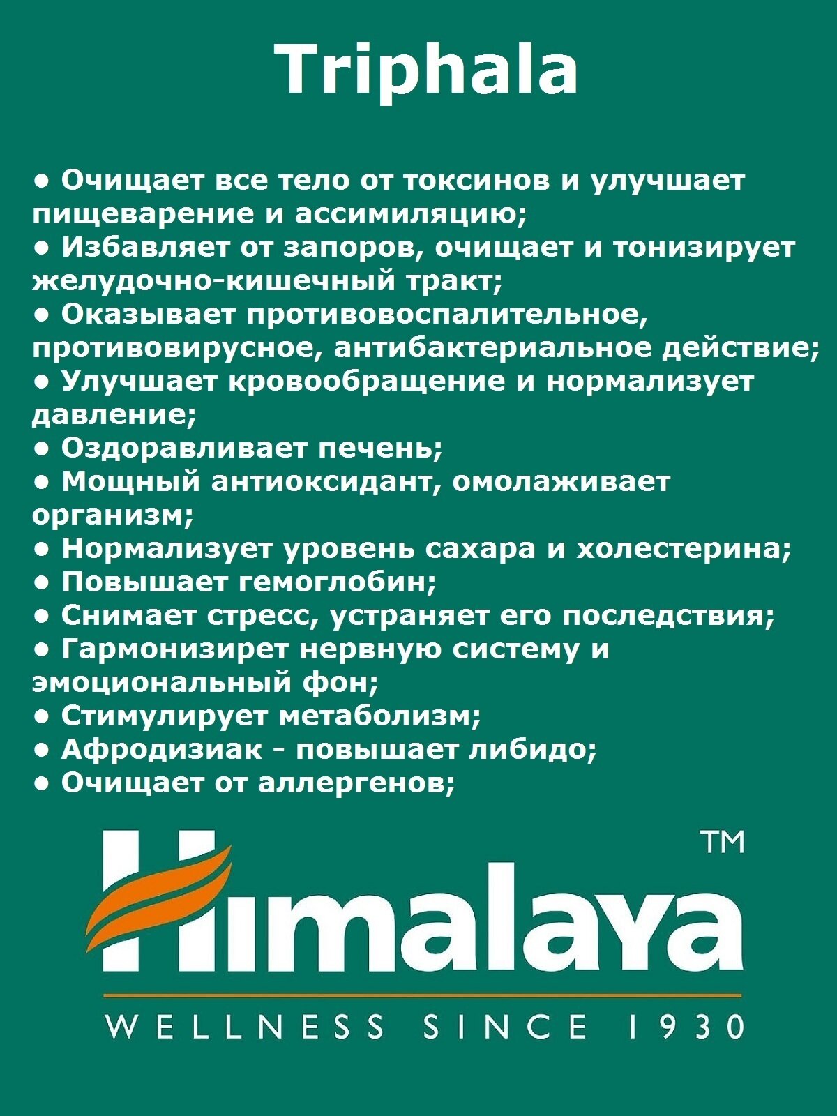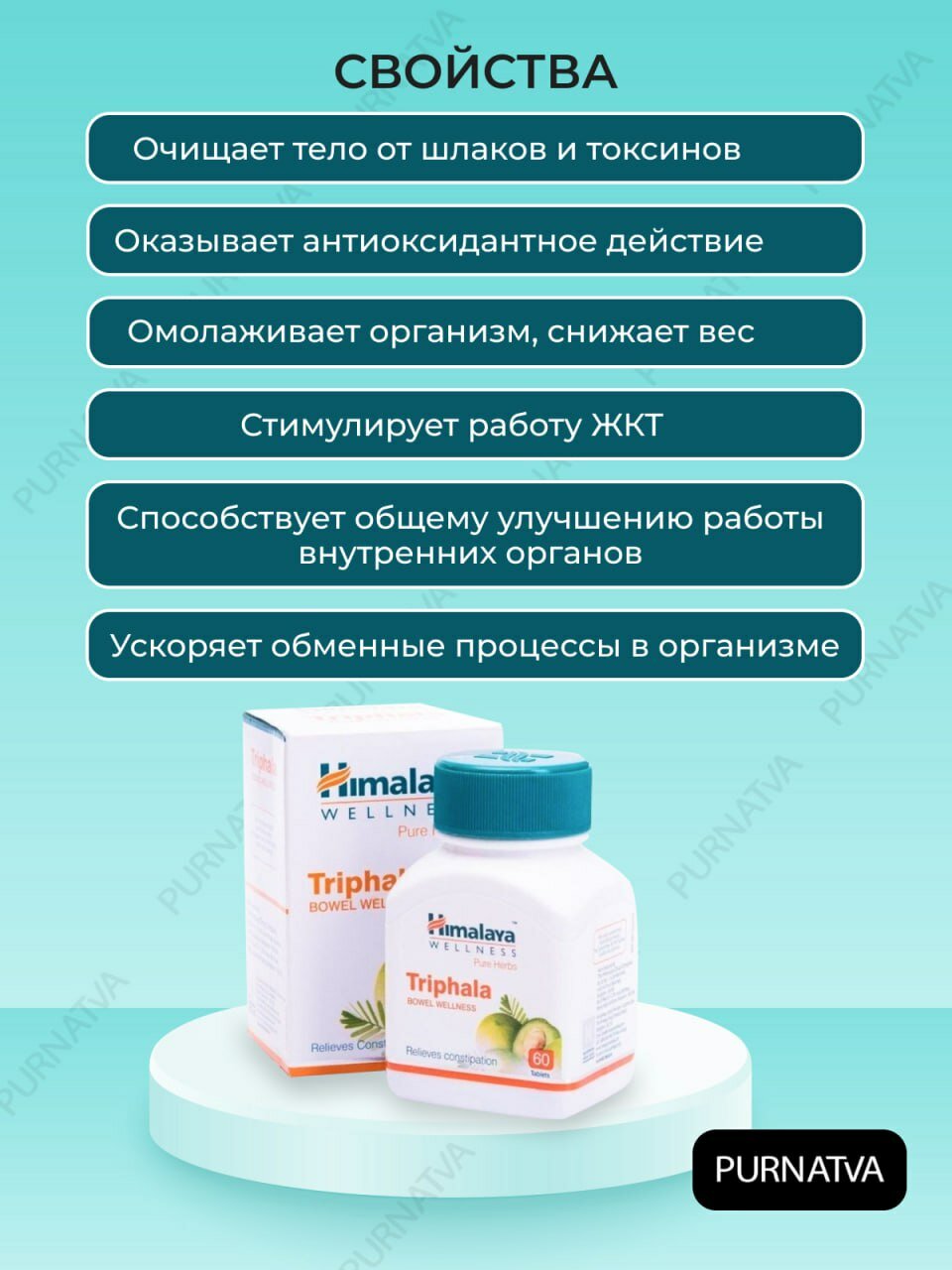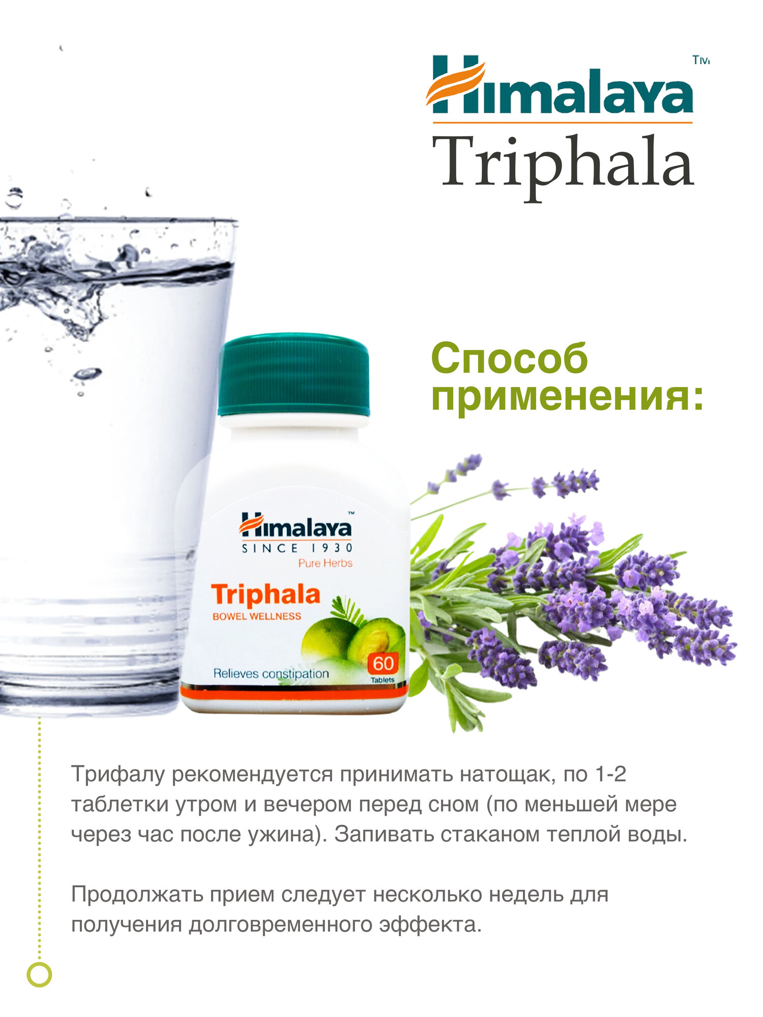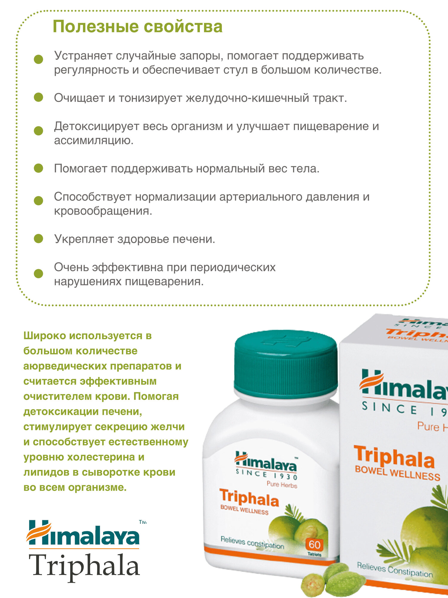 | Комплектация | Таблетки Himalaya Triphala Трифала - 60 штук/упаковка |