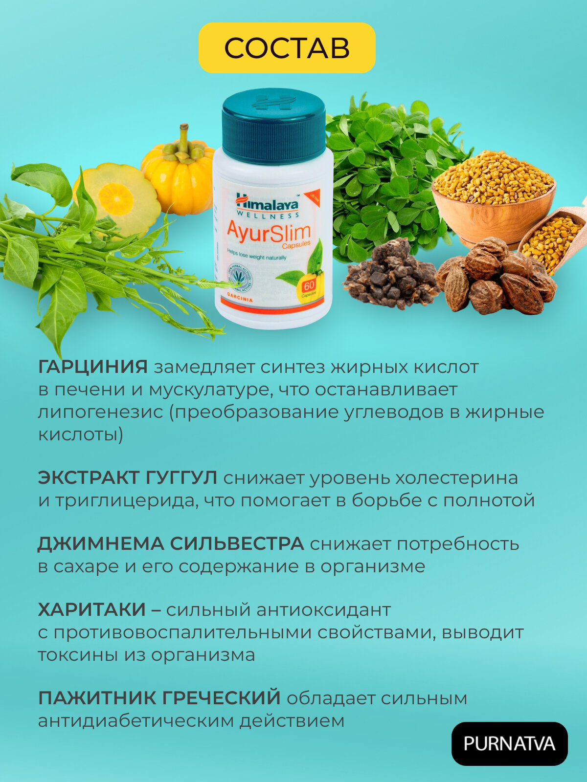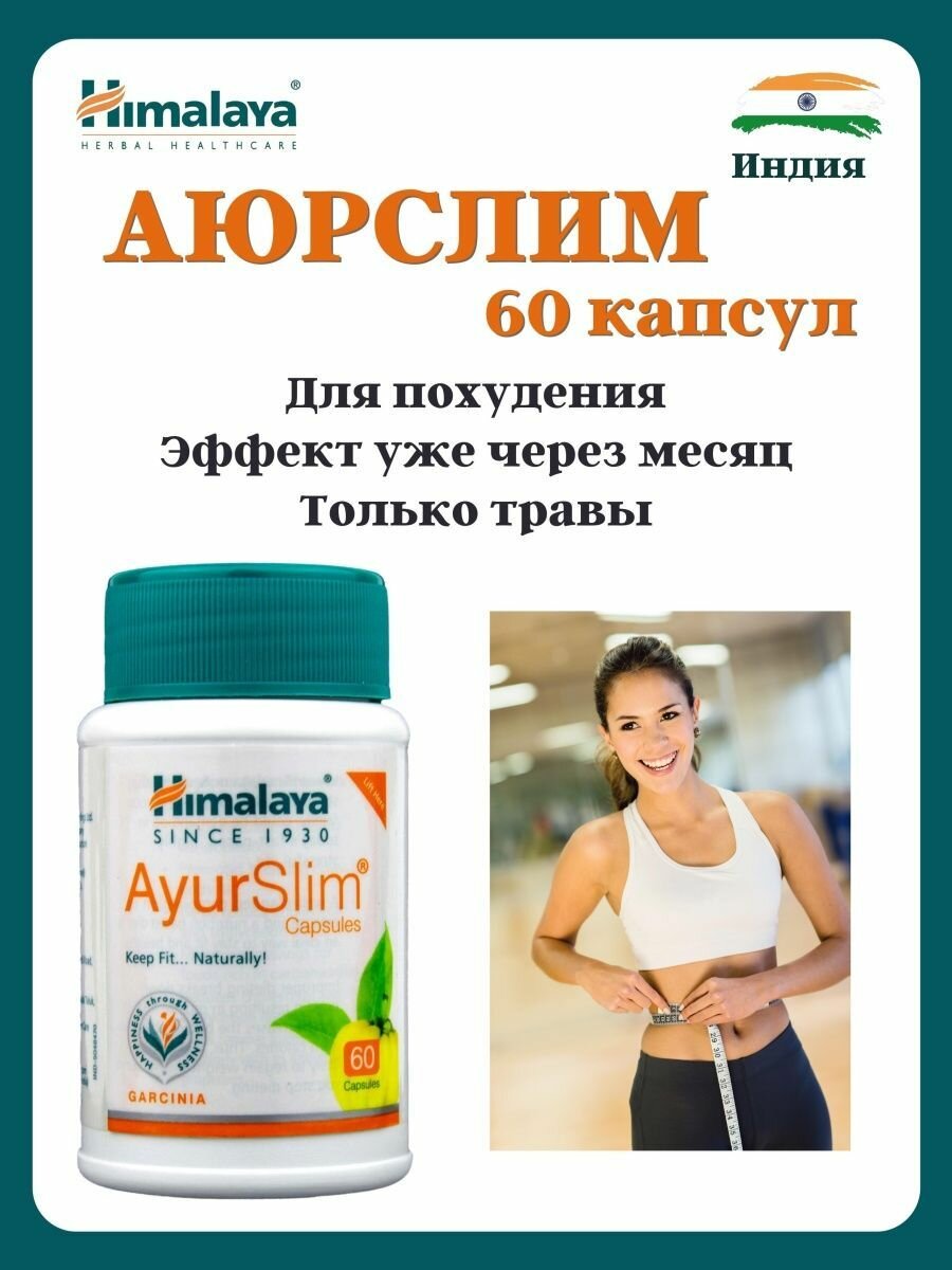 Таблетки Аюрслим Хималая (AyurSlim Himalaya), для снижения веса, улучшает обмен веществ, детокс, расщепляет жиры, 60 капс. интересное: