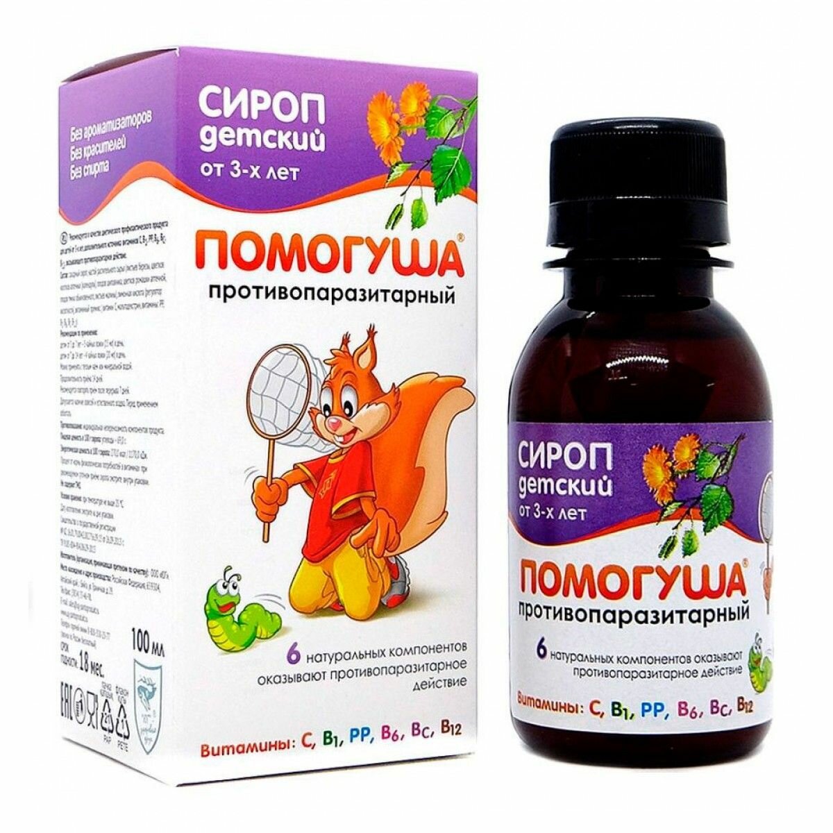 | Комплектация | Помогуша Противопаразитарный сироп детский, 100 мл в картонной упаковке |