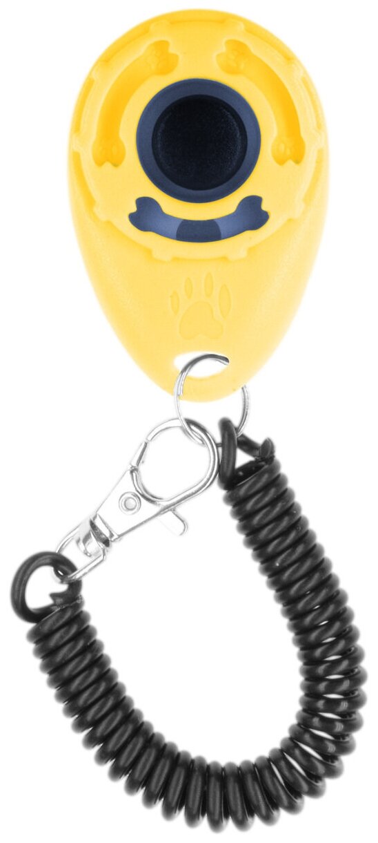 СохранитьИгрушка для собак ZooWell, Кликер на браслете для дрессировки собак с карабином, желтый интересное: