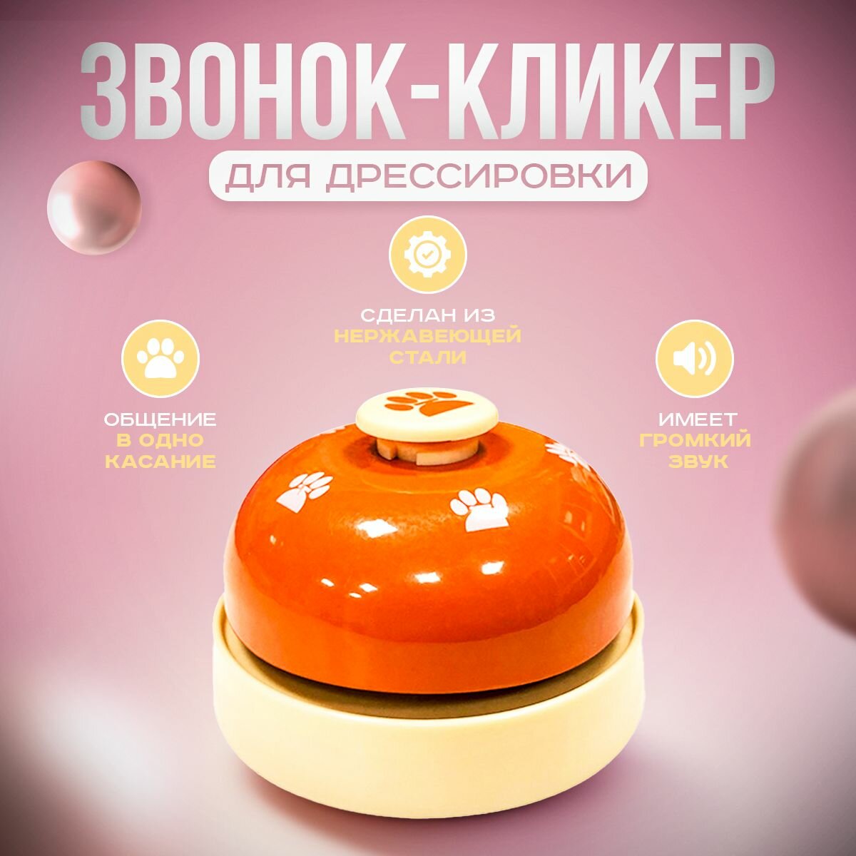 Интерактивный звонок (кликер, кнопка, колокольчик) для дрессировки собак с принтом оранжевый интересное: