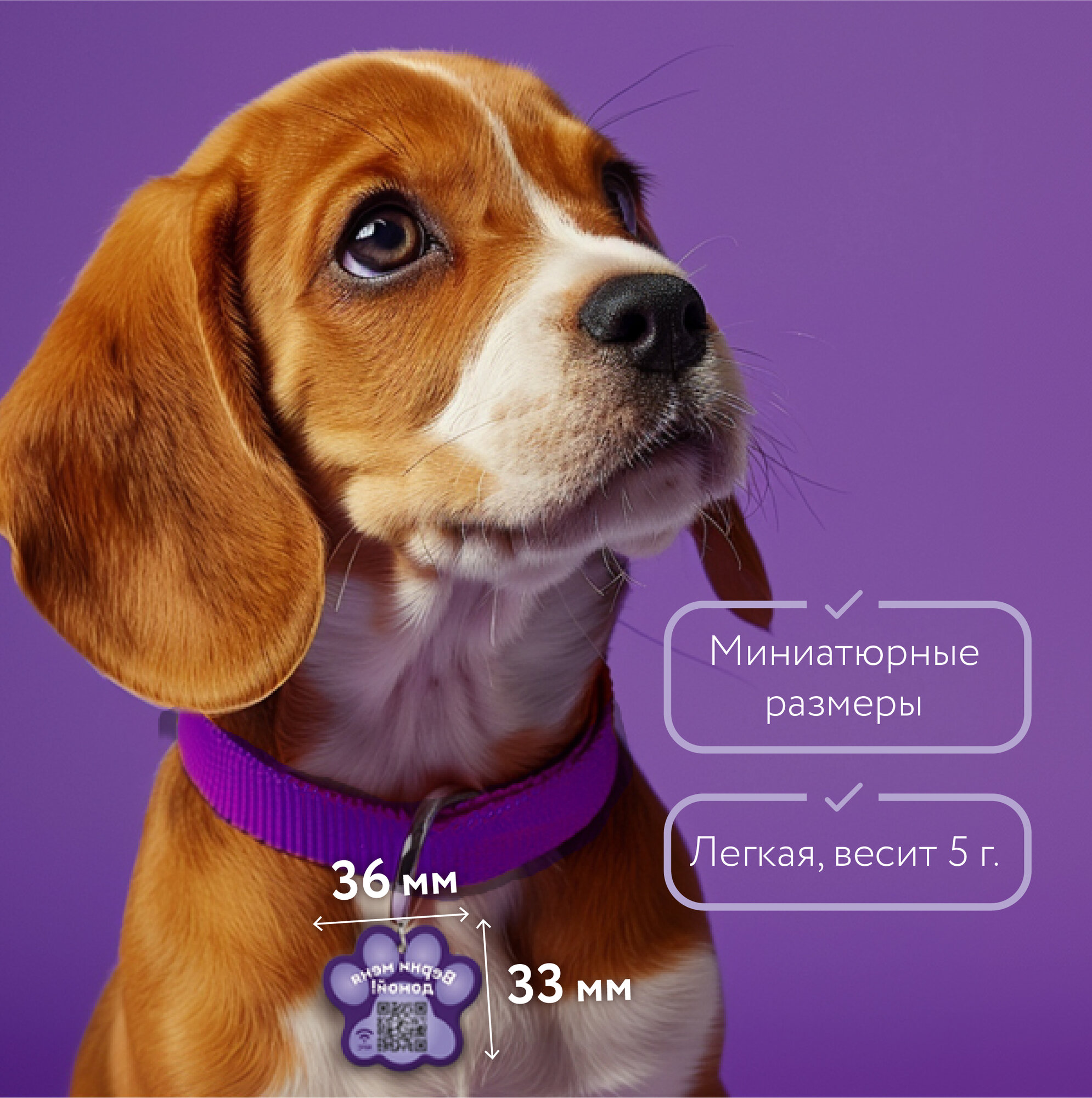 Адресник PetCard для собак и кошек с QR кодом и NFC, фиолетовый. интересное: