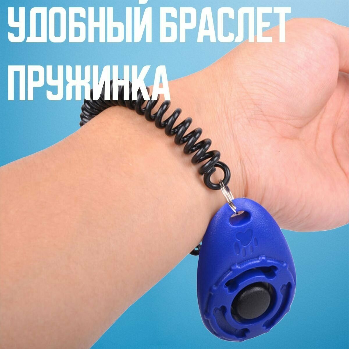 Кликер для дрессировки собак на браслете с карабином, цвет синий
