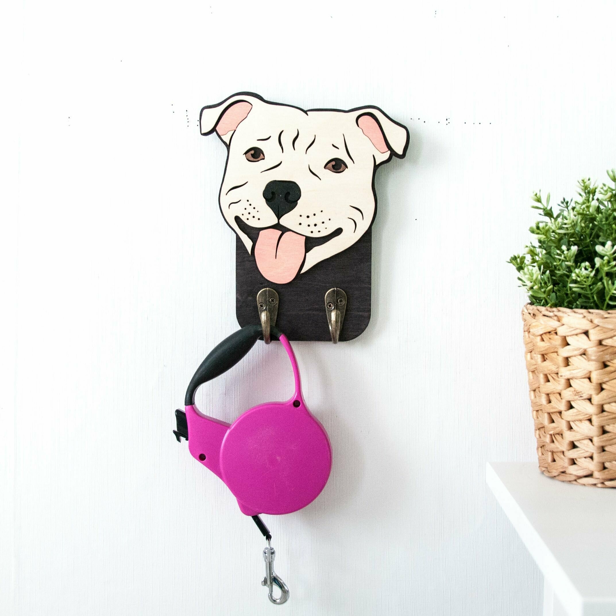 Вешалка для поводков из дерева настенная собака Стаффордширский бультерьер интересное: