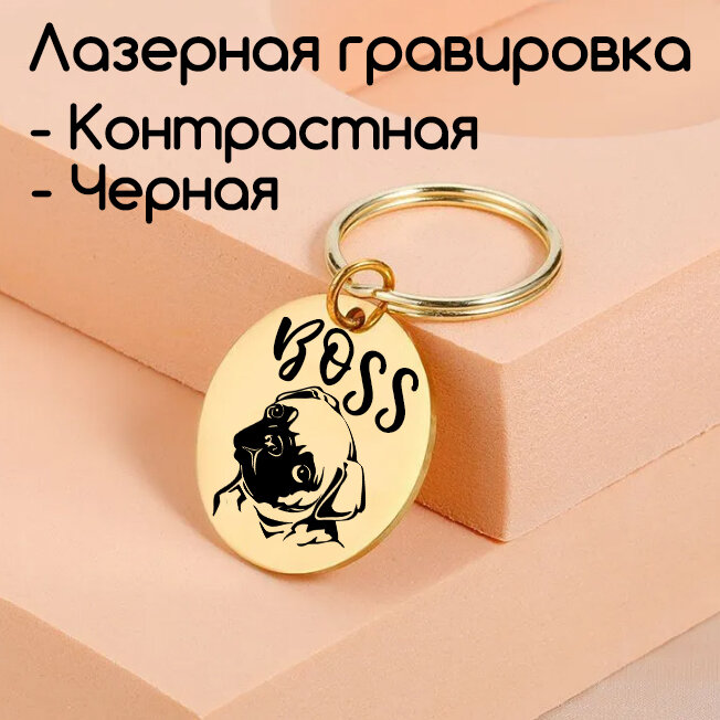 Адресник для собак и кошек с гравировкой, брелок на ключи, именной жетон, размер 30mm. Нержавеющая сталь. Золотой Матовый