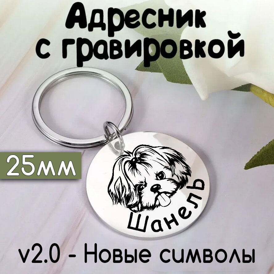 Адресник для собак и кошек с гравировкой, брелок на ключи, именной жетон, размер 25mm. Нержавеющая сталь. Серебро матовый
