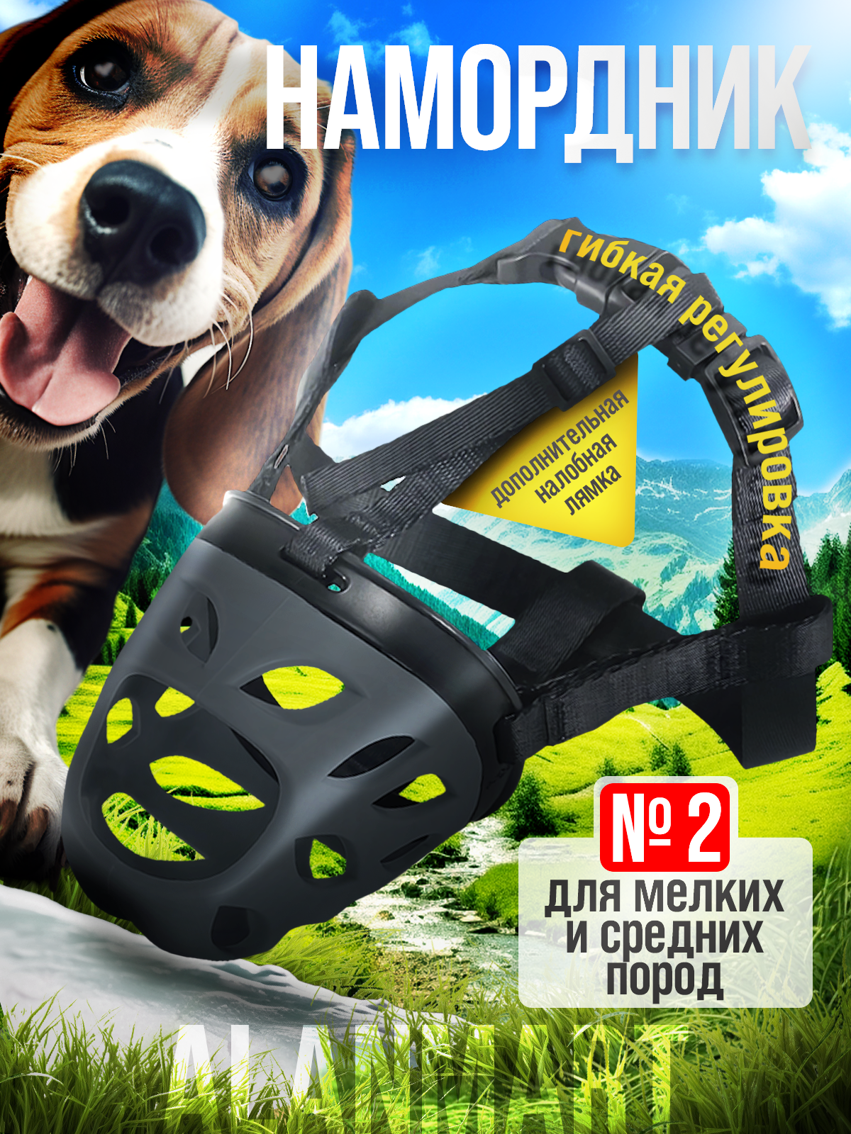 Купить Намордник для мелких и средних собак пород корги, бигля, для щенков крупных пород, размер №2 (М), силиконовый, черный