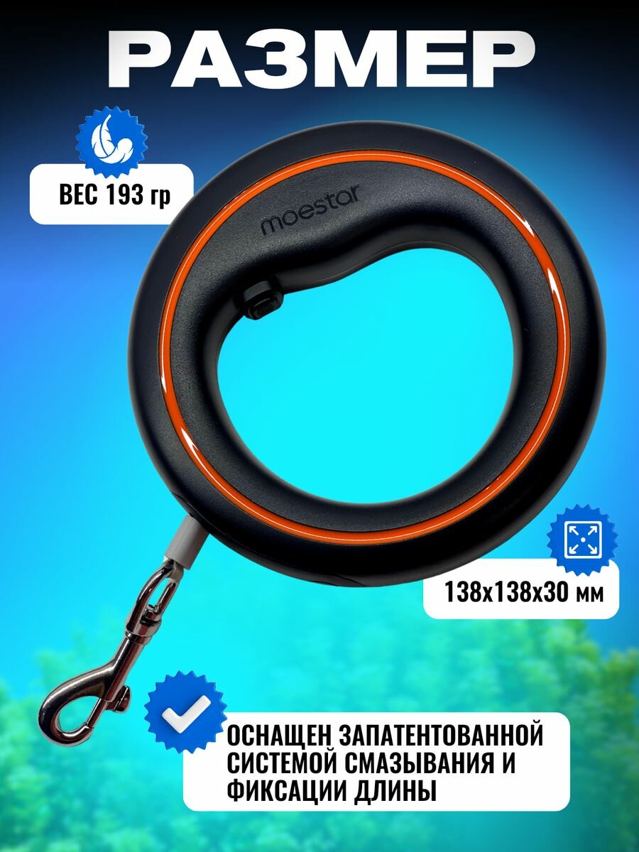 Поводок рулетка для собак Moestar UFO Retractable Leash 2 Air (Черно-оранжевый)