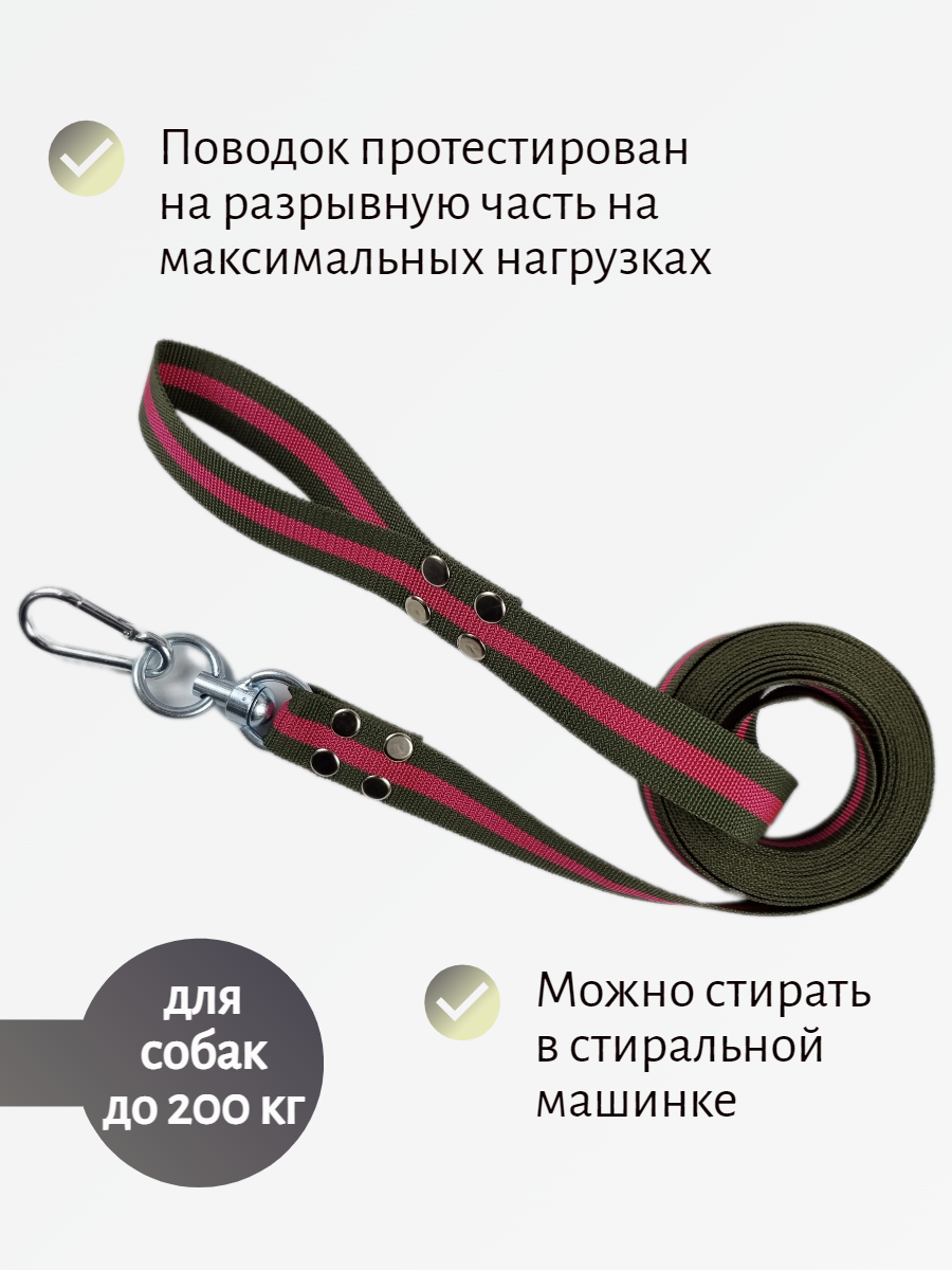 Поводок Хвостатыч для собак крупных пород с вертлюгом и альпинистским карабином нейлон 2 м х 35 мм (Зелено-красный)