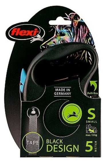 Flexi New Black Design Рулетка черно-синяя S лента 5м до 15кг