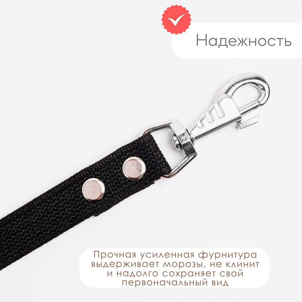 Поводок для собак Хвостатыч брезентовый с карабином (Чёрный) 1.5 м х 25 мм