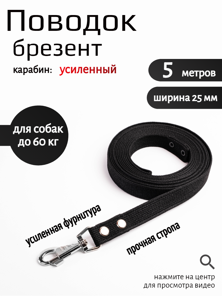 Купить Поводок для собак Хвостатыч брезентовый с карабином (Чёрный) 5 м х 25 мм