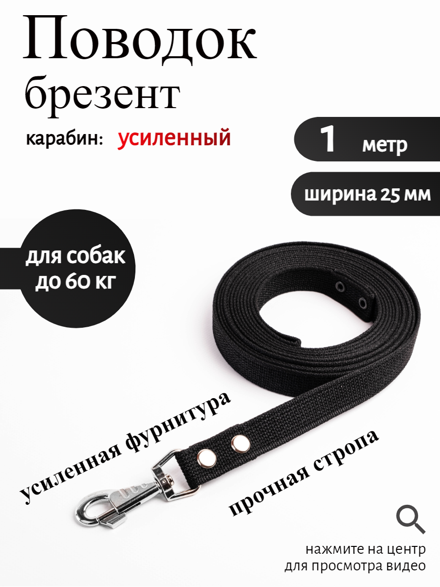 Купить Поводок для собак Хвостатыч брезентовый с карабином (Чёрный) 1 м х 25 мм