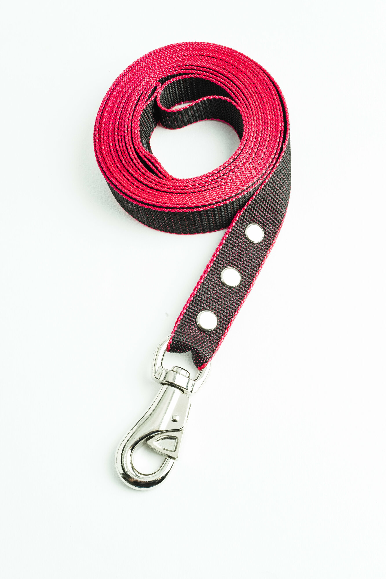 Купить Поводок Хвостатыч для собак с бычьим карабином нейлон 1.5 м х 30 мм (черно-красный)