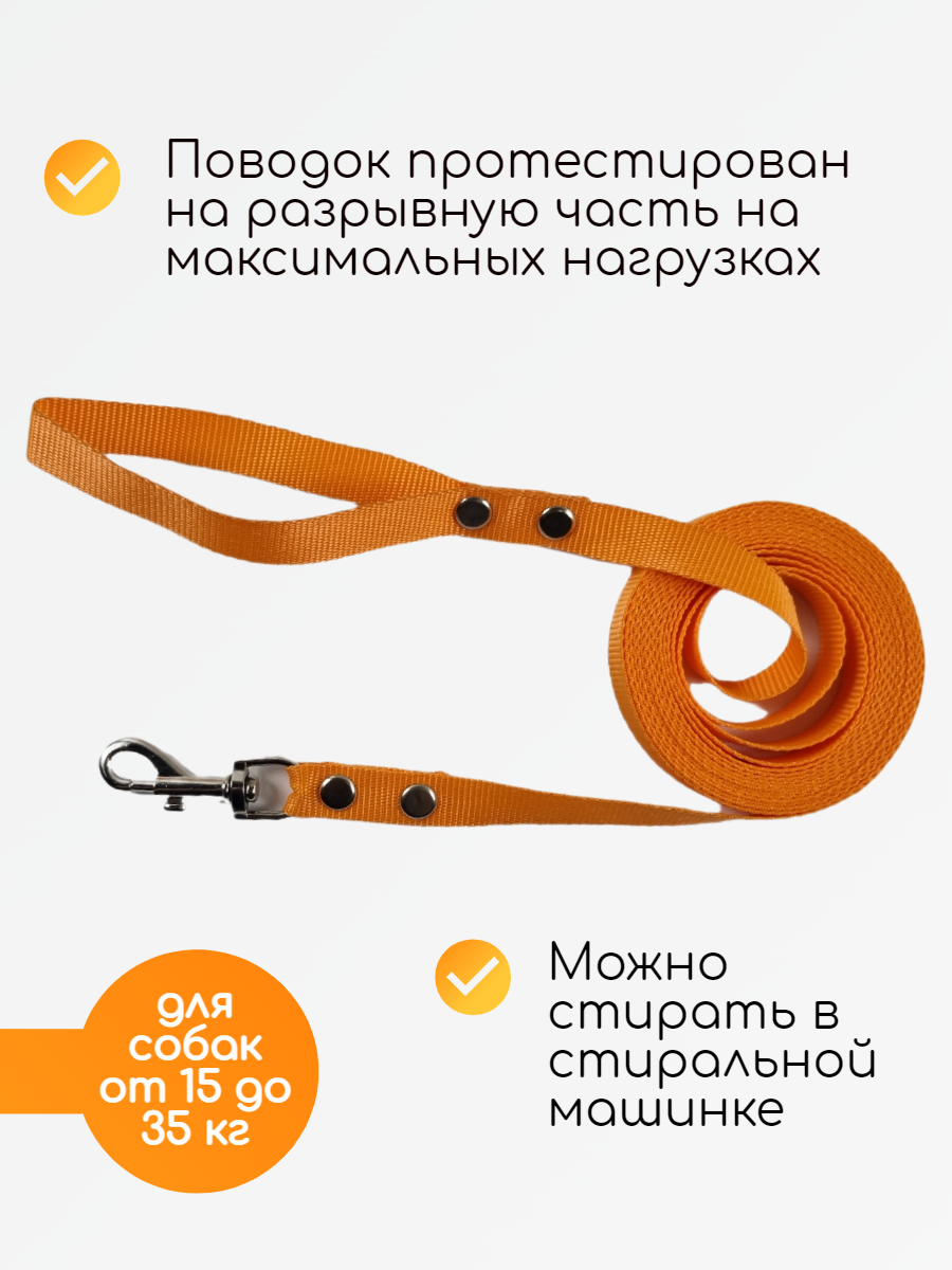 Поводок Хвостатыч для собак нейлоновый классический 2 м х 20 мм (Оранжевый)
