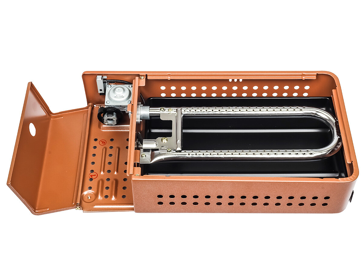 | Минусы: | Очень чувствителен к ветру. Учитывая то, что в закрытом помещении его использовать проблематично (дымит капающий жир), область применения сводится к полузакрытым помещениям: беседка, балкон, гараж и т.п. Также подойдёт для использования в лесу, там, куда не задувает ветер. |
