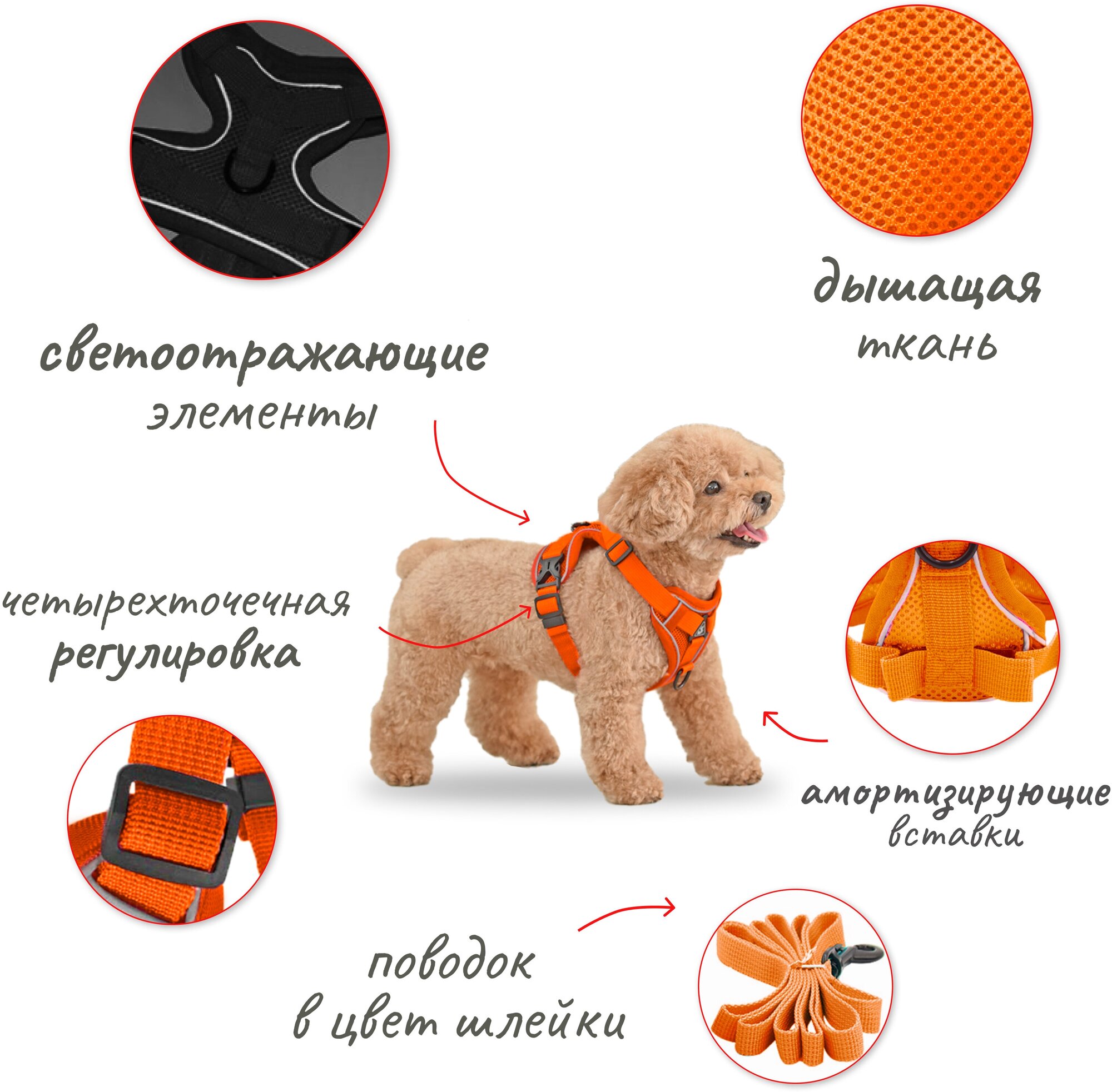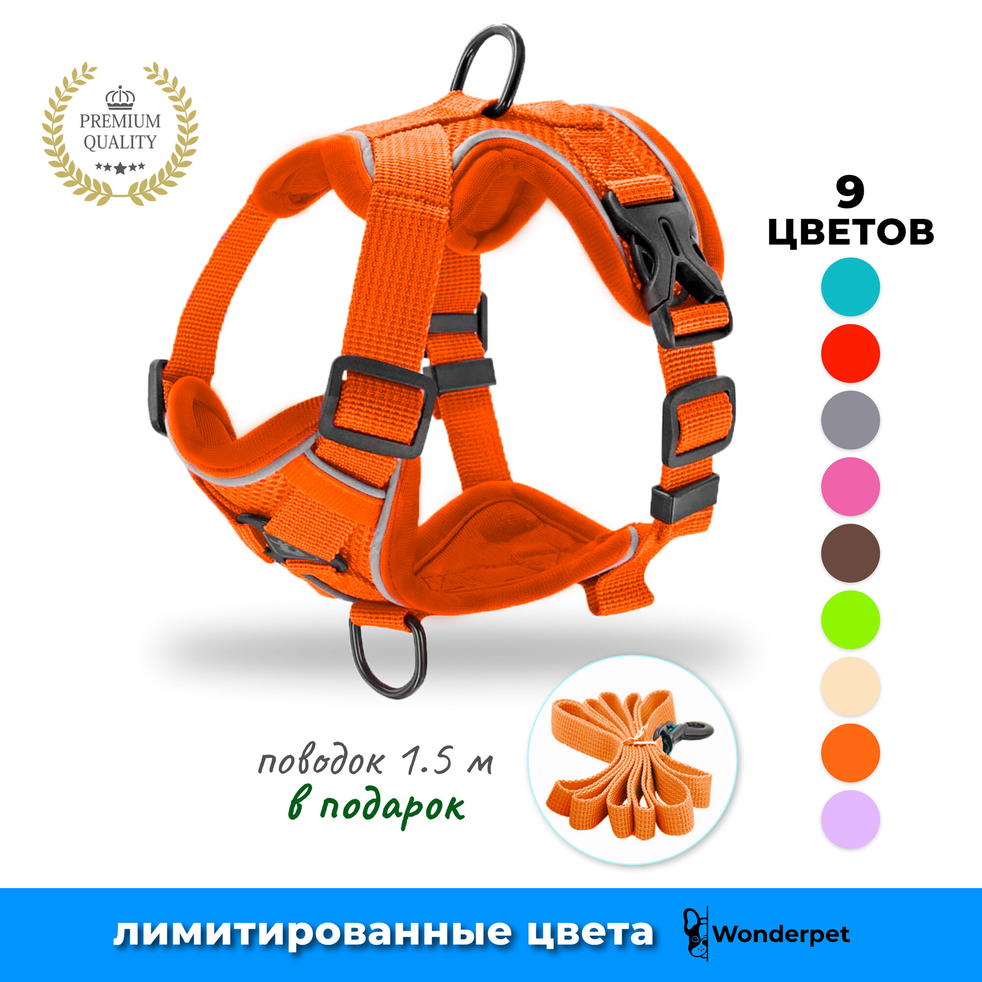 Шлейка прогулочная для собак и кошек регулируемая Wonder Pet / размер L / оранжевый