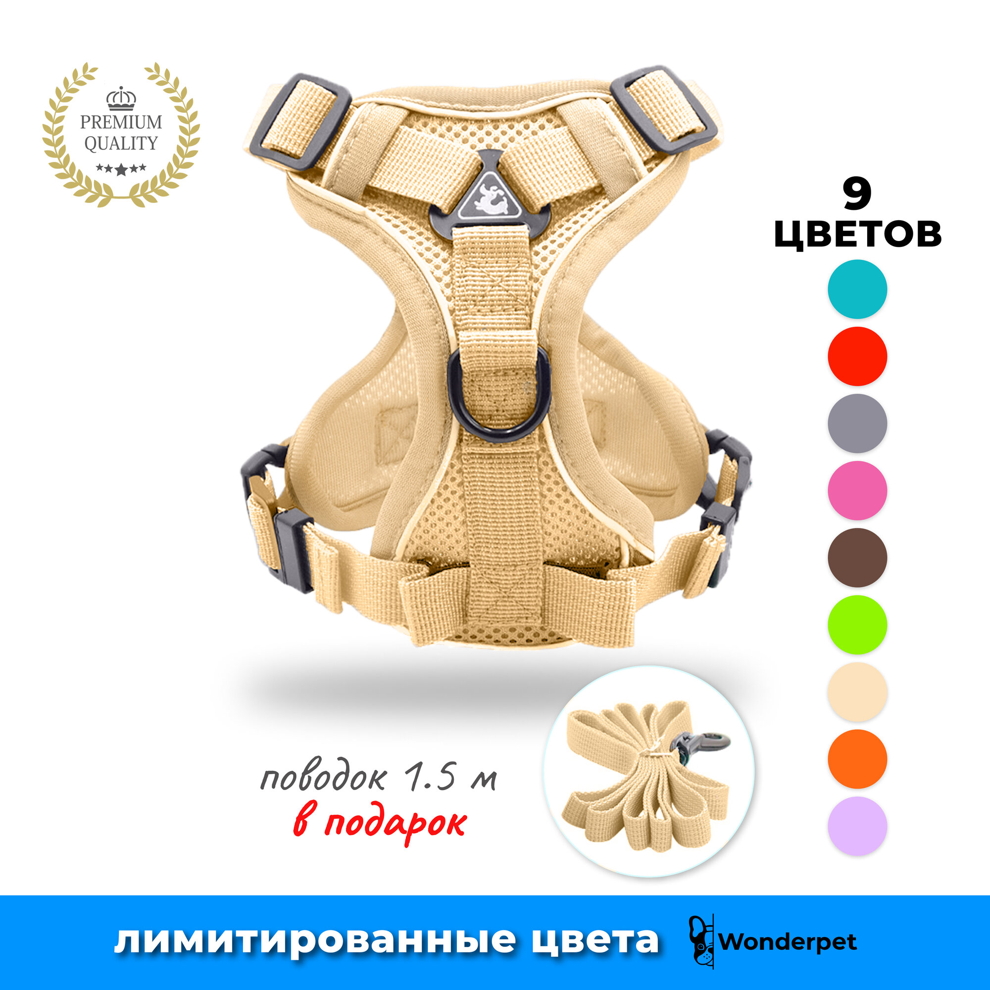 Шлейка прогулочная для собак и кошек регулируемая Wonder Pet / размер XL / бежевая