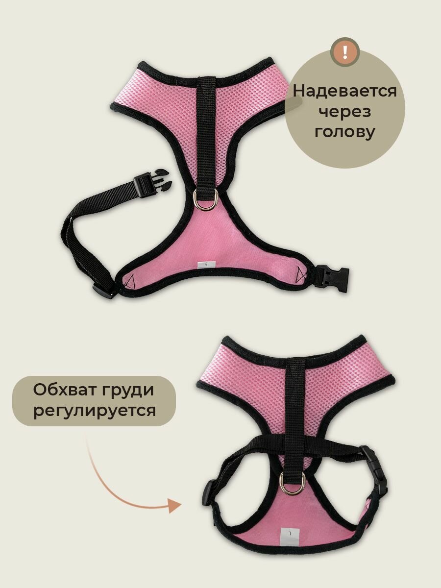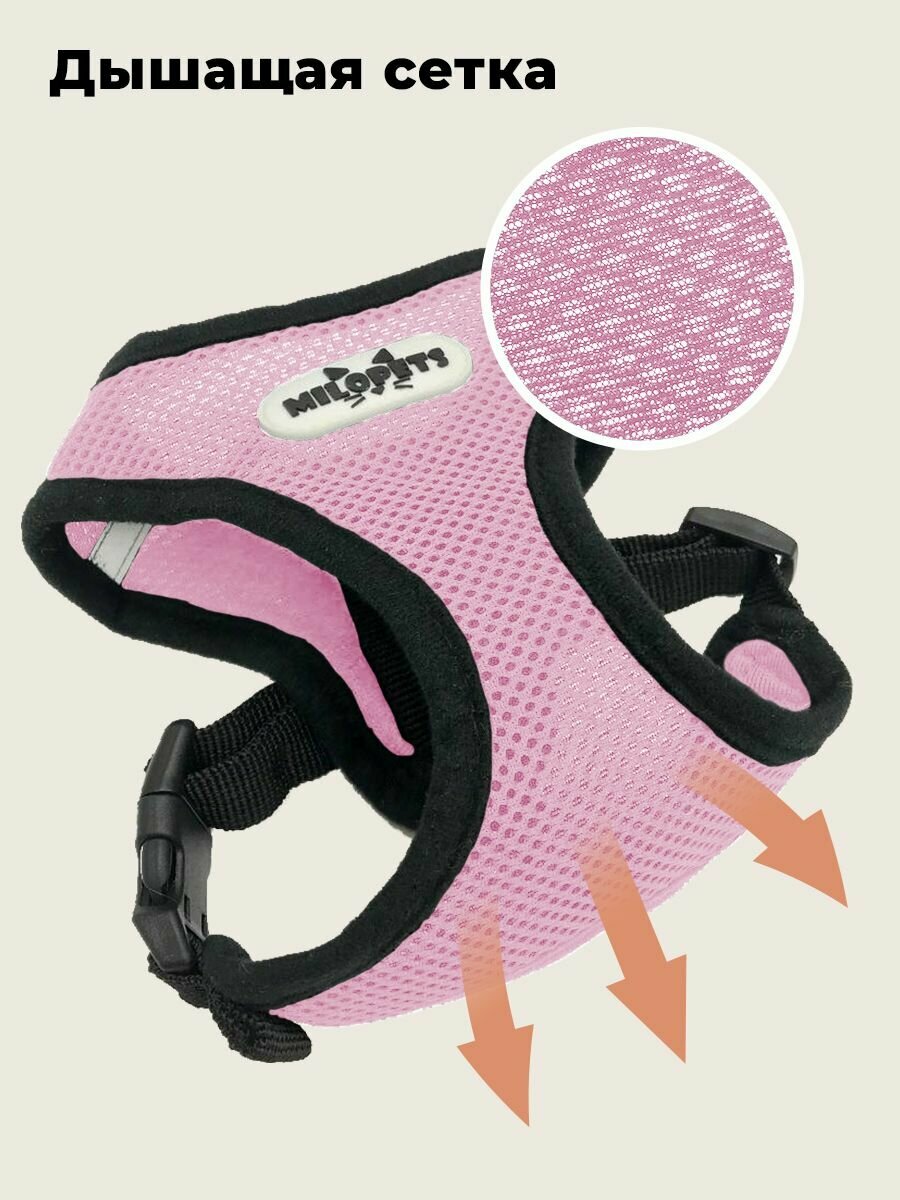 Шлейка MiloPets для собак и кошек анатомическая, с поводком 120 см, обхват груди L 46-60 см, розовый интересное: