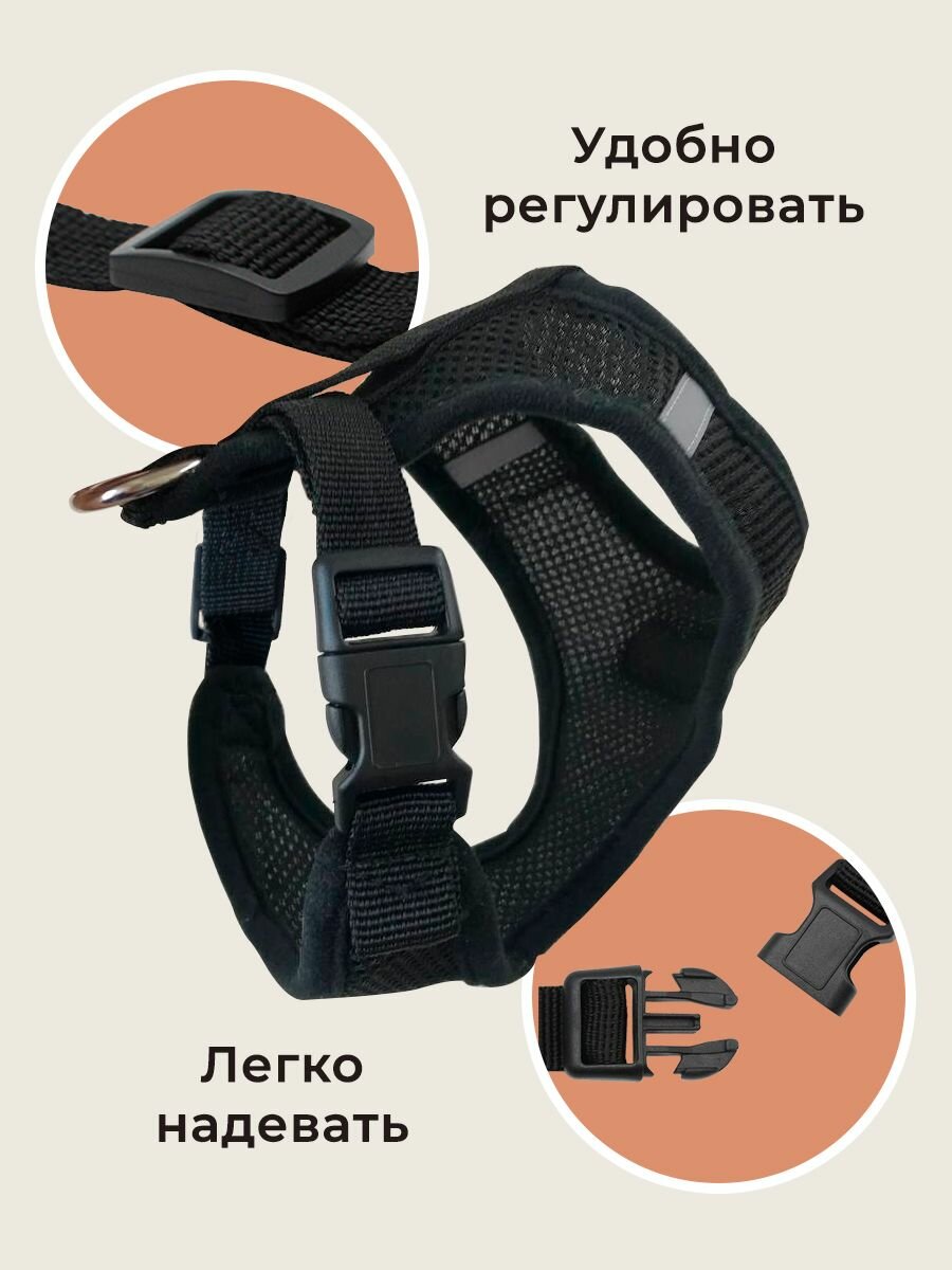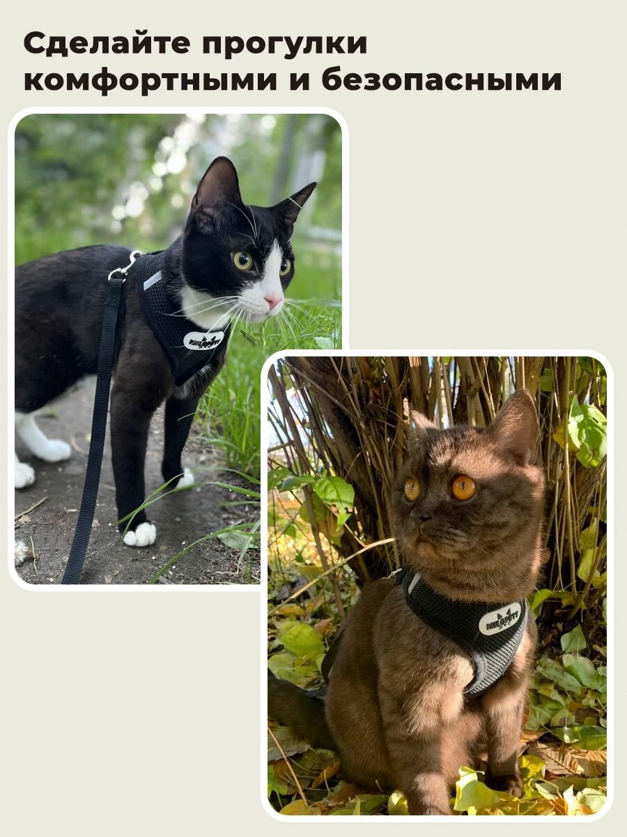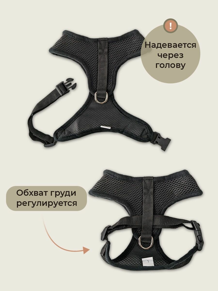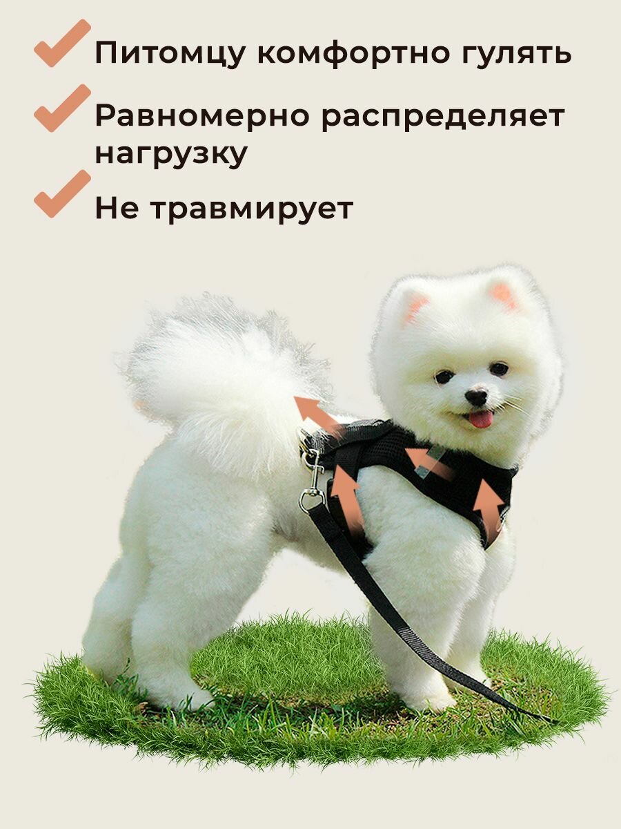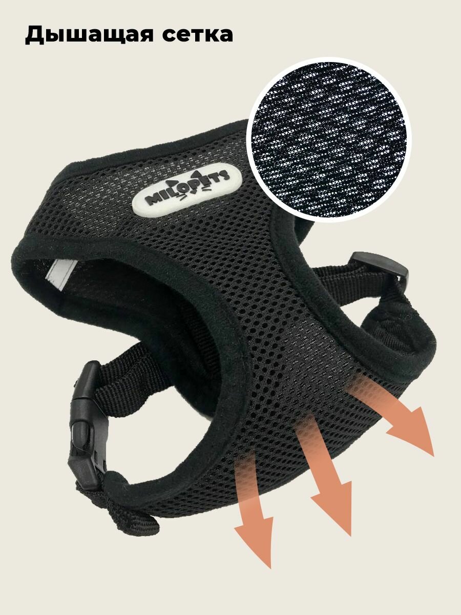 Шлейка MiloPets для собак и кошек анатомическая, с поводком 120 см, обхват груди L 46-60 см, черный интересное: