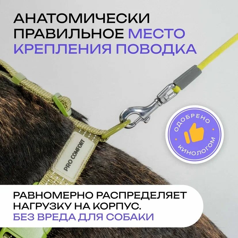Шлейка для собак средних и крупных пород анатомическая размер L, хаки, PRO COMFORT