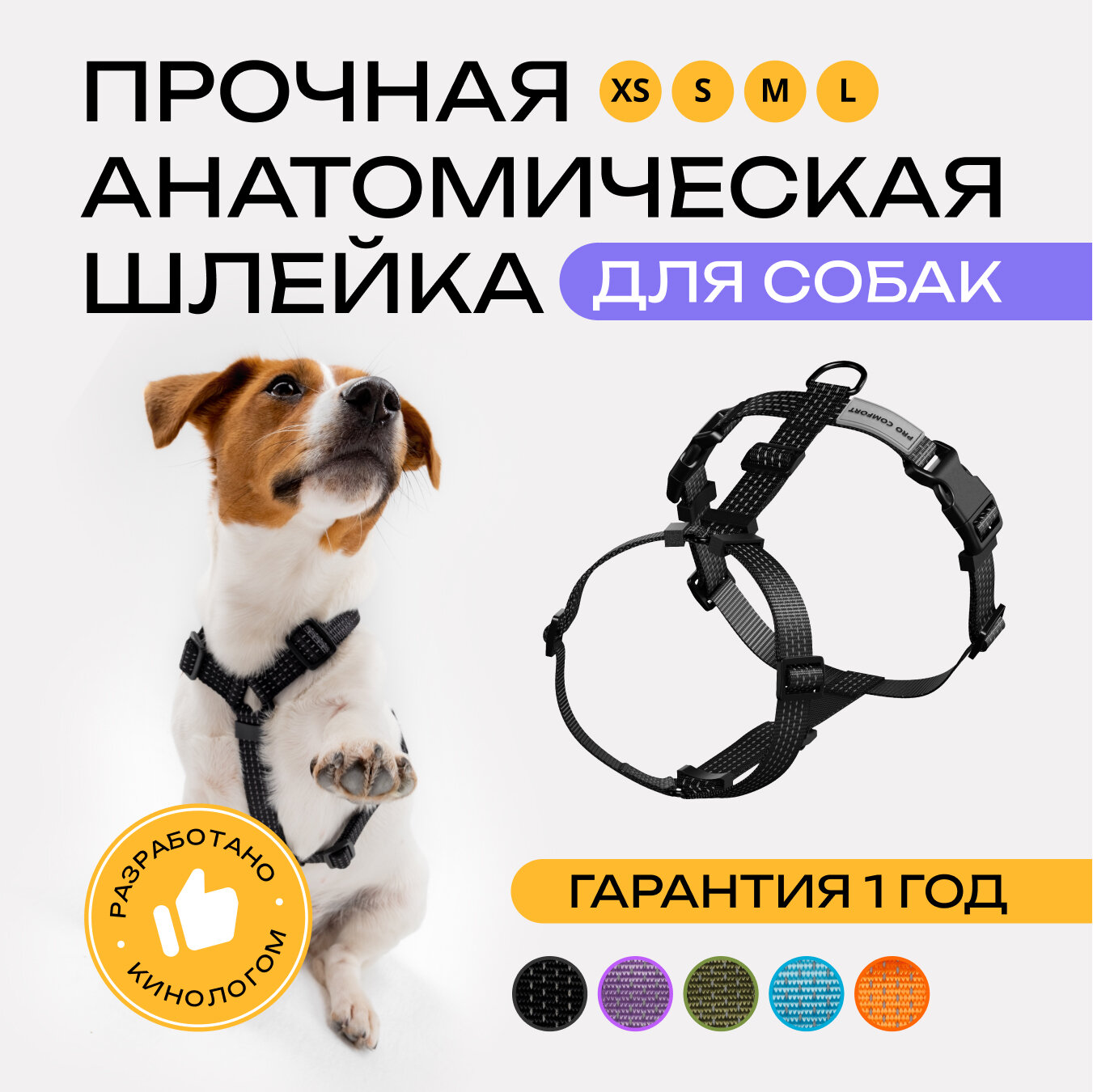 | Особенности | быстросъемная, дизайнерская, для пожилых собак, регулируемая, со светоотражающими элементами, универсальная |