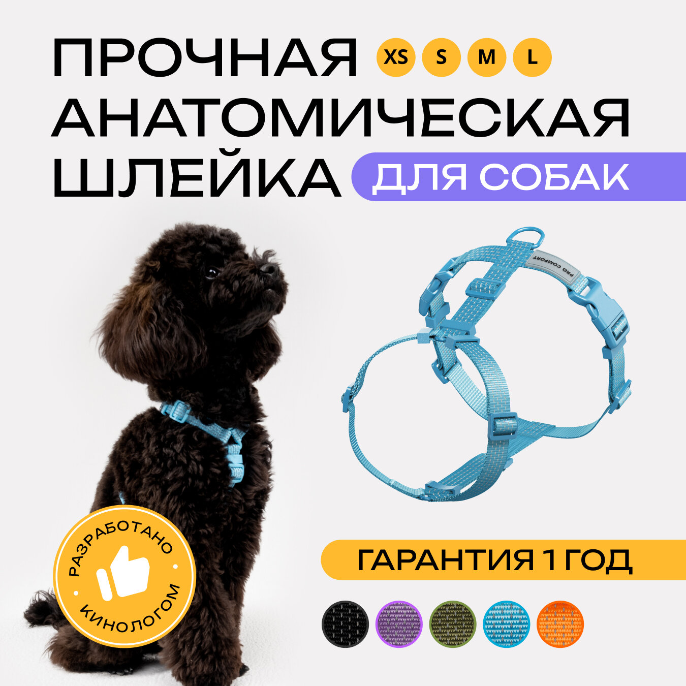 | Особенности | быстросъемная, дизайнерская, для пожилых собак, регулируемая, со светоотражающими элементами, универсальная |