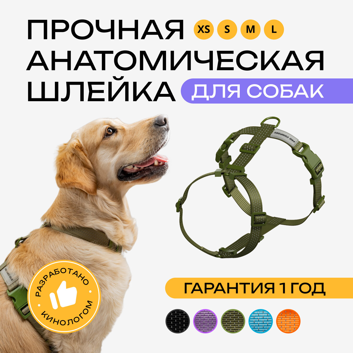 Шлейка для собак средних и крупных пород анатомическая размер М, хаки, PRO COMFORT